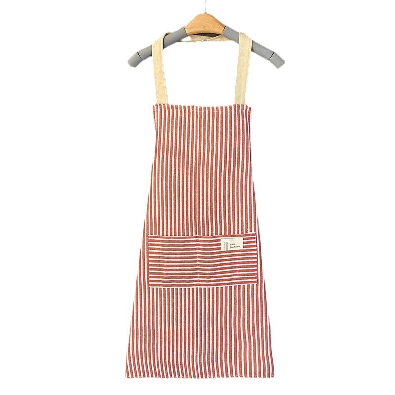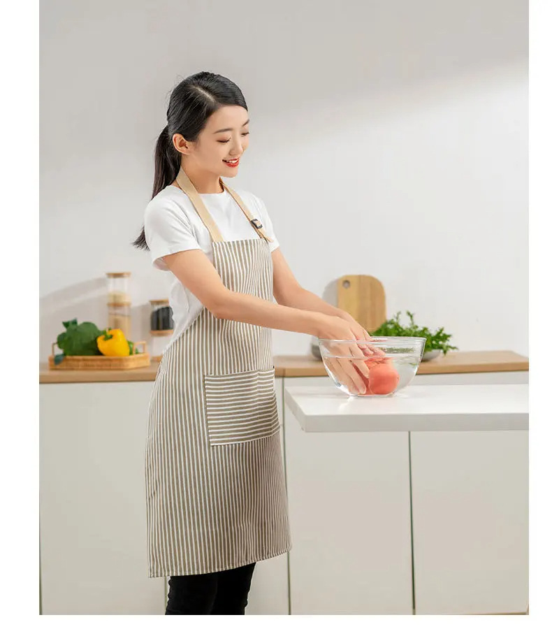 리넨 앞치마 줄무늬면 소재 가정용 일본 앞치마 청소 요리 큰 주머니 주방 여성용 앞치마 바지