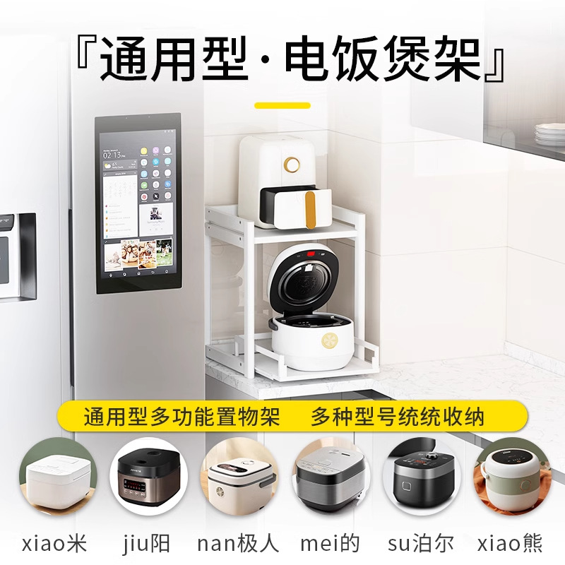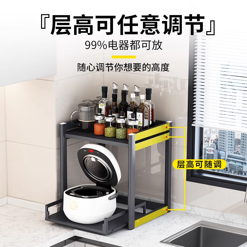 주방 밥솥 보관 랙 풀 아웃 테이블 상단 더블 레이어 냄비 랙 에어 프라이어 전자 레인지 보관 랙