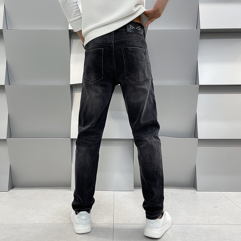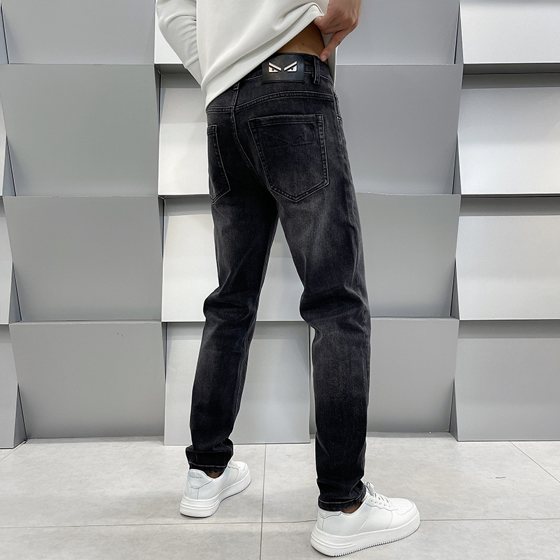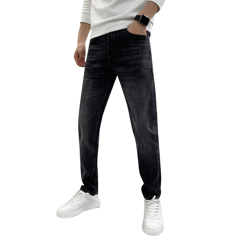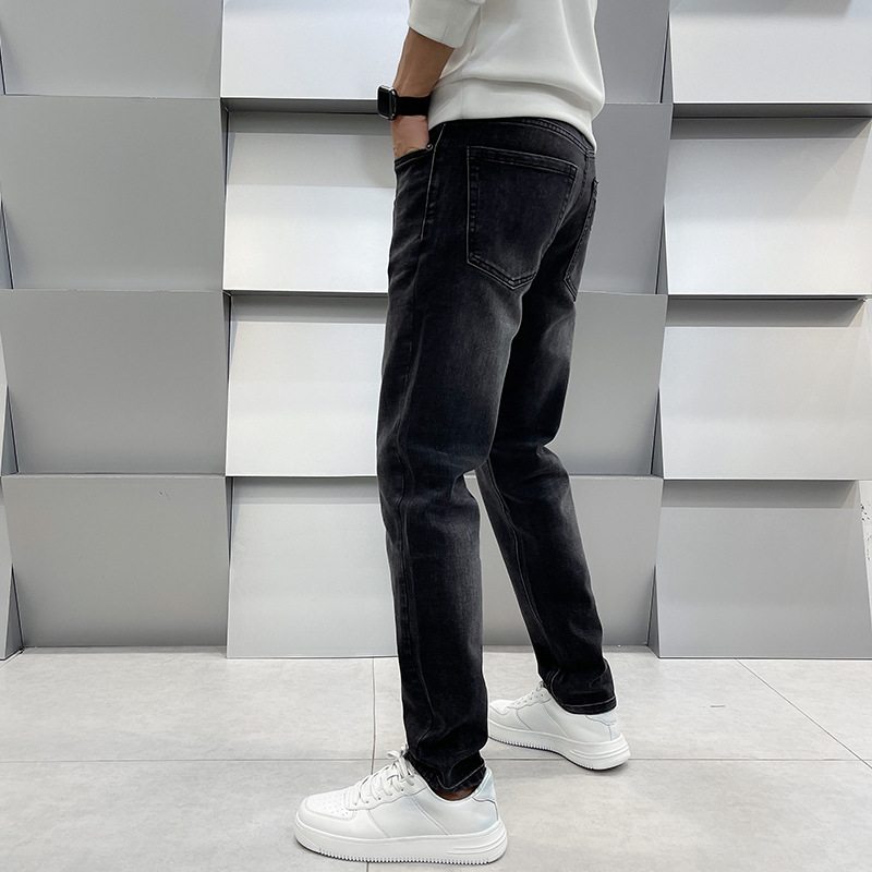 봄 새로운 남성 청바지 한국 스트레치 하이 엔드 크로스 보더 유럽 상품 스트레이트 튜브 젊은 학생 작은 괴물 긴 바지