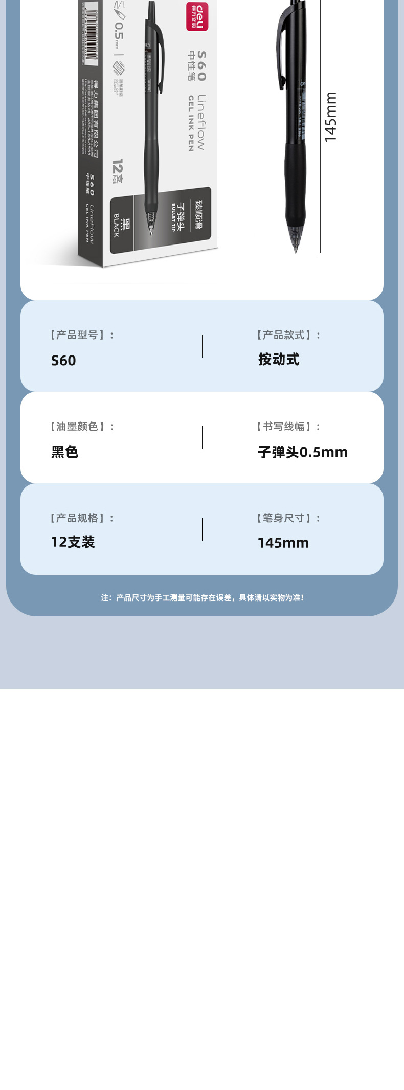델리 S60 Zhenshun 슬립 오피스 젤 펜 0.5mm 총알 (잉크 블루) (분기)