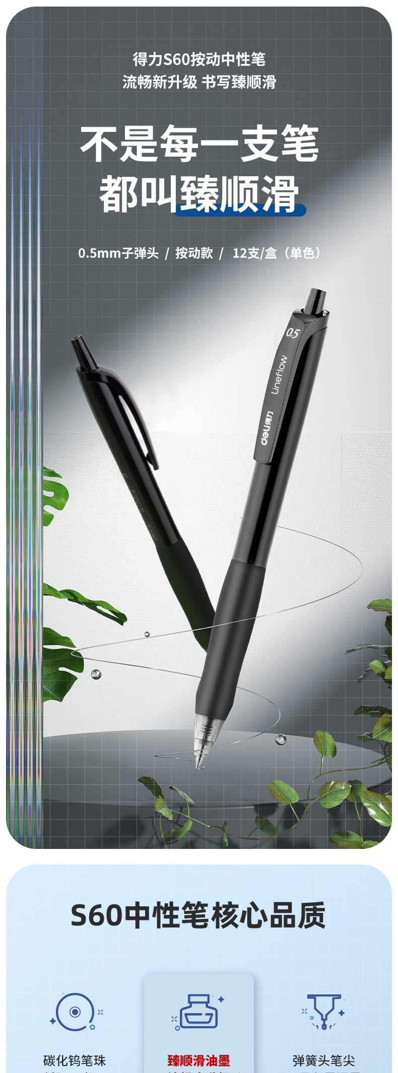 델리 S60 전순 슬립 오피스 젤 펜 0.5mm 총알 (검정) (분기)