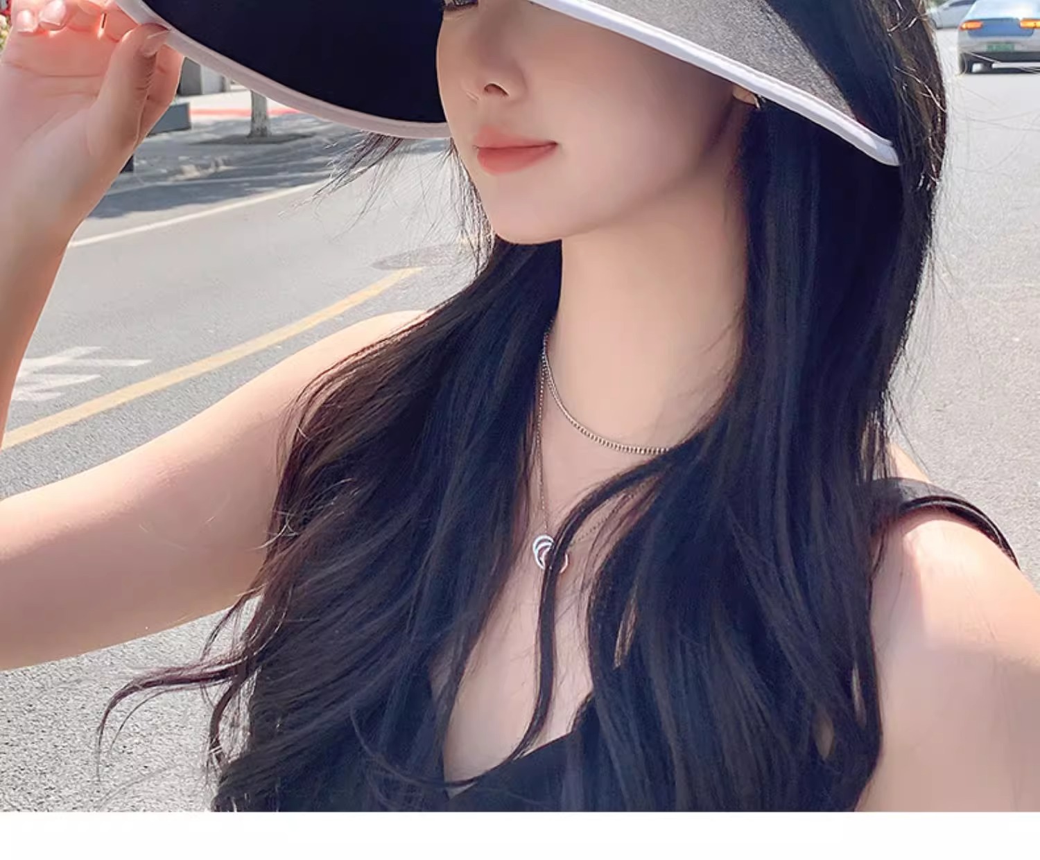 흰색 배경과 검은 색 가장자리 [UPF50 대형 테두리 양면 얼음 실크 업그레이드 접이식 버전]]