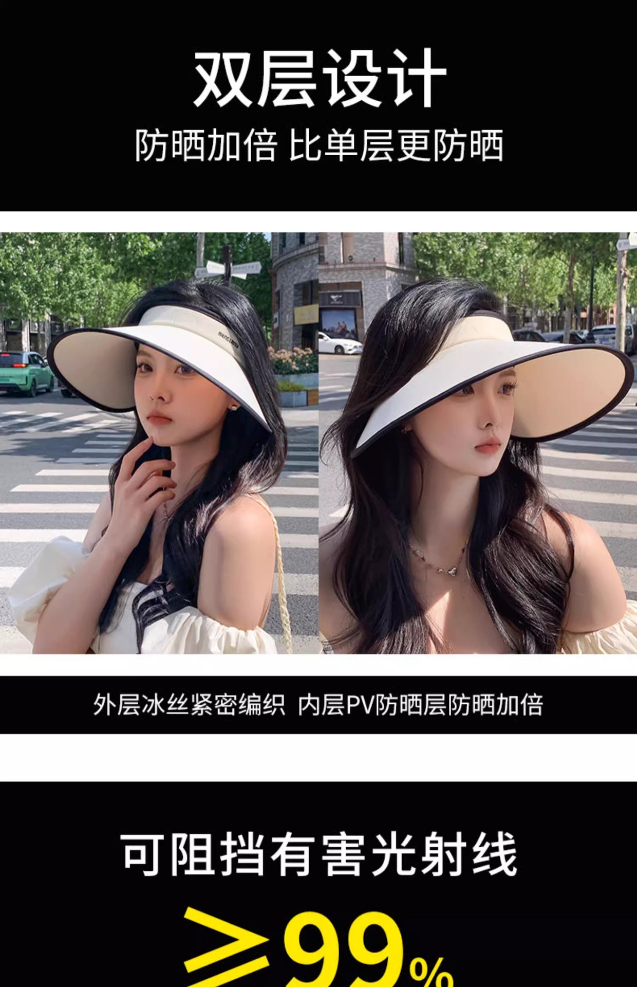 밀크 화이트 [UPF50 대형 브림 양면 아이스 실크 업그레이드 접이식 버전]]