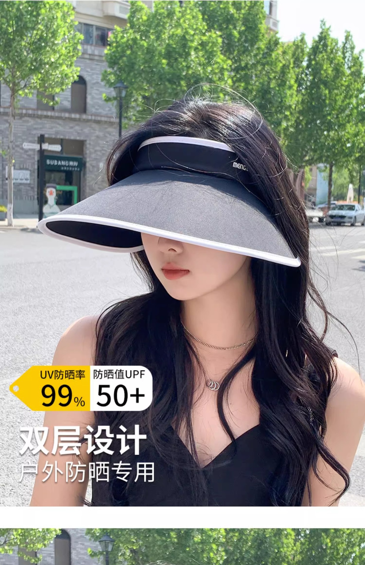 블랙 [UPF50 대형 브림 양면 아이스 실크 업그레이드 접이식 버전]]