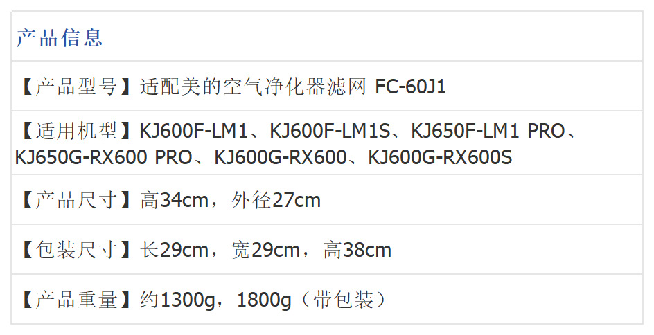 Midea 공기 청정기 LM1 RX600S PRO 필터에 적합 이중층 필터 액세서리 LM1S 필터