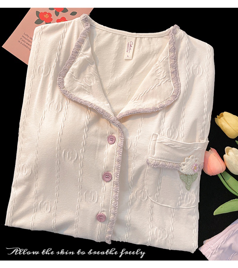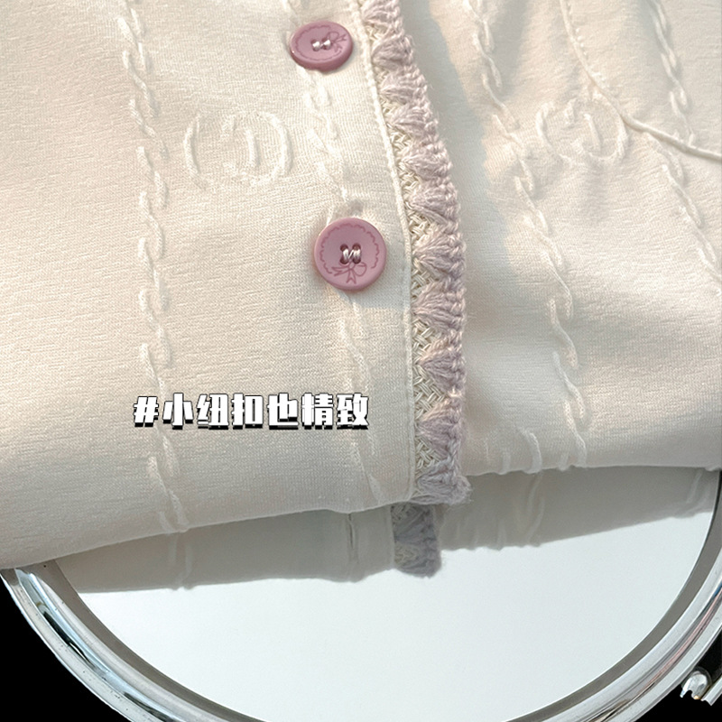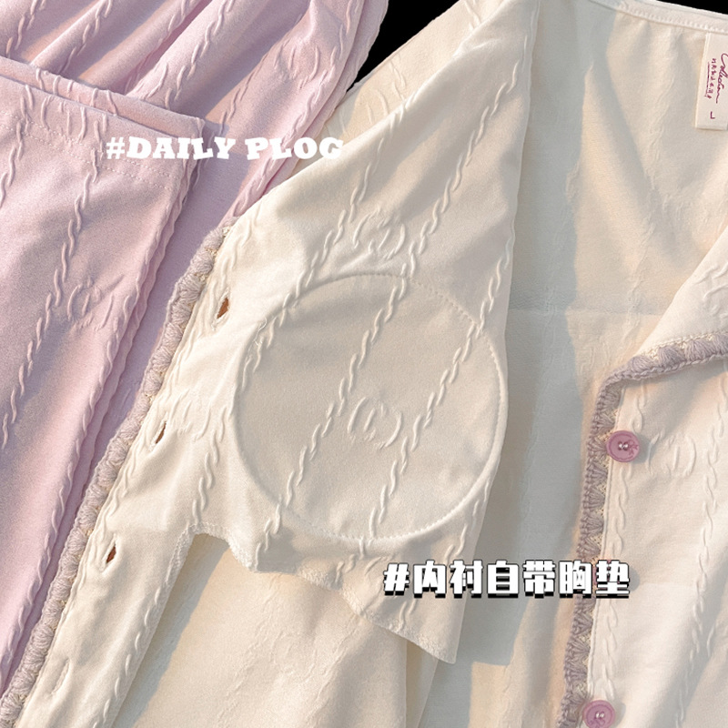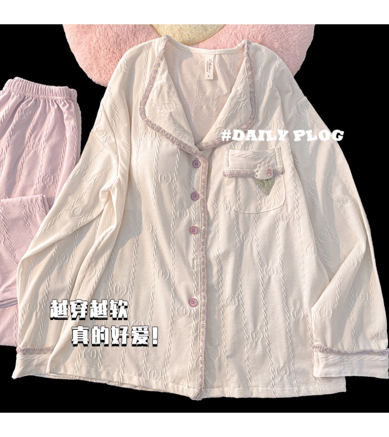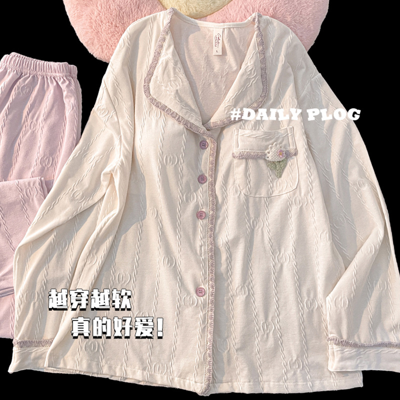 봄과 가을 잠옷 여성의면 긴팔 바지 가슴 패드 달콤한 2024 새 잠옷 여성 홈웨어