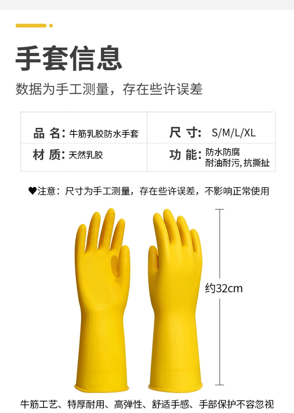 쇠고기 텐돈 장갑 여성 세탁 가정용 청소 자동차 세척 주방 가정용 야채 세척 고무 난양 Xiongfeng 산업용 산 및 알칼리 저항성