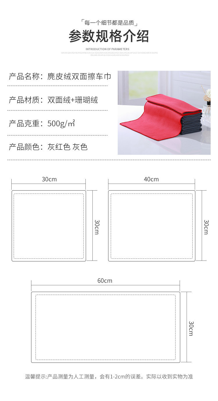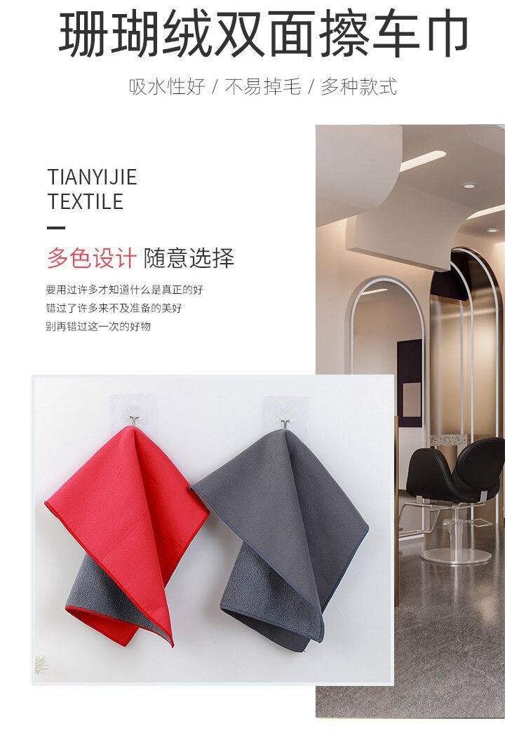단색 산호 양털 더블 레이어 자동차 수건 데어스킨 벨벳 세차 뷰티 클리닝 양면 타월 두껍게 청소 흡수성 천
