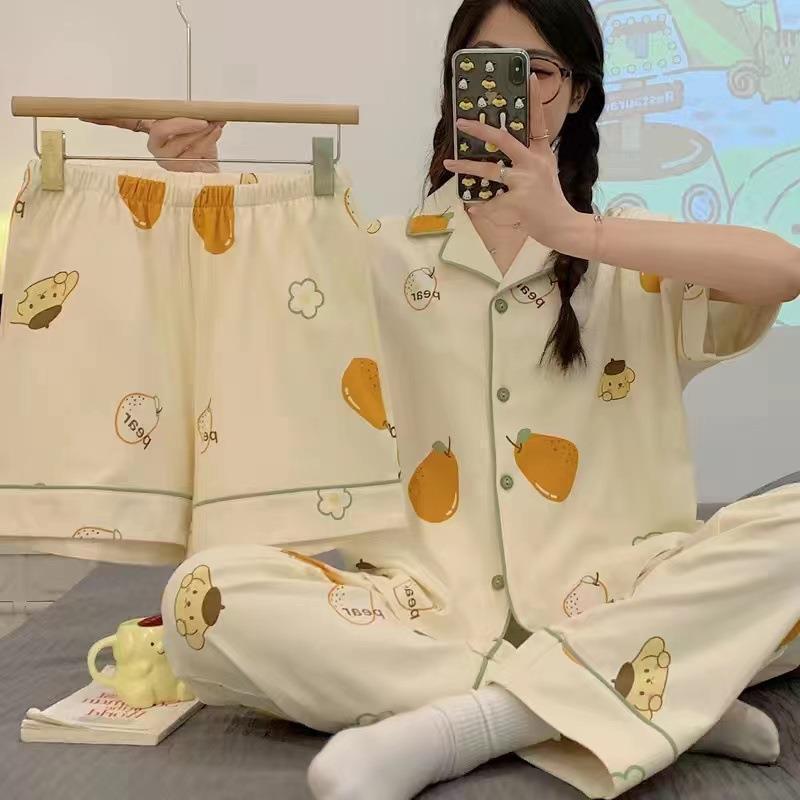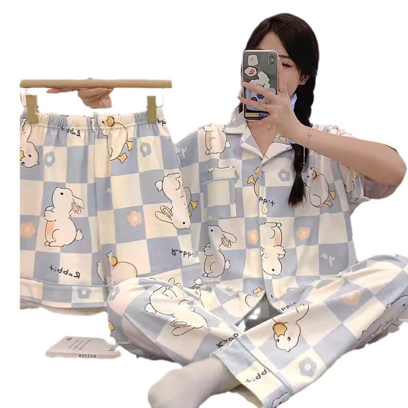 토끼 잠옷 여성 3 피스 세트 여름 체크 무늬 반팔 바지 귀여운 여름 플러스 사이즈 그물 레드 스타일 홈웨어