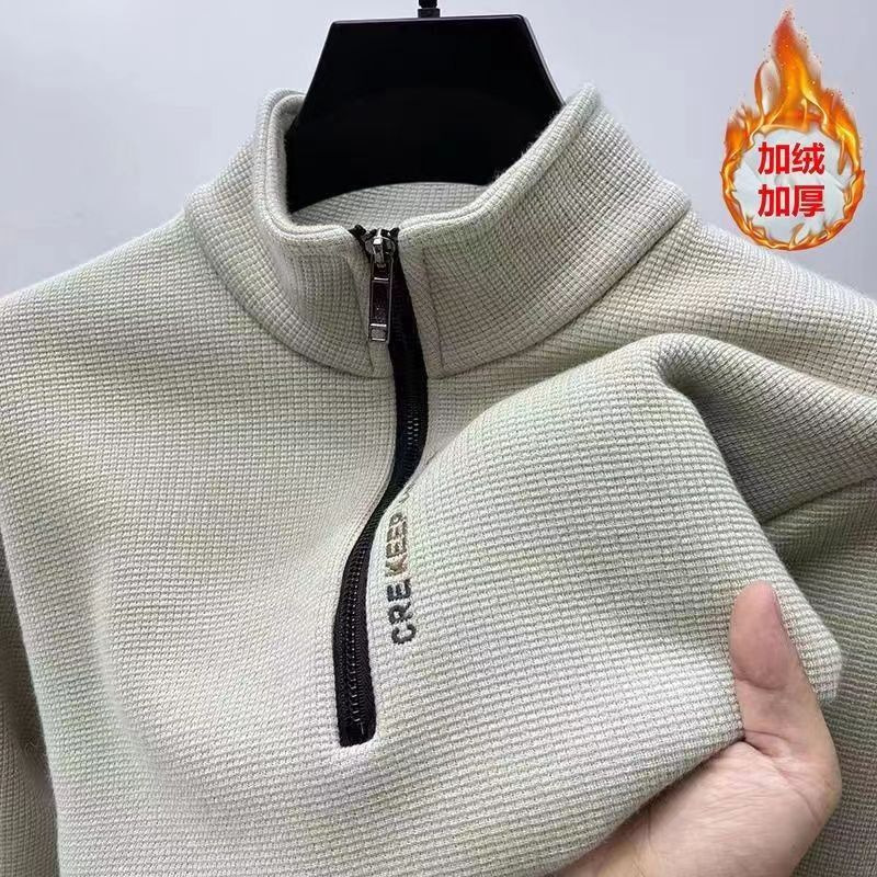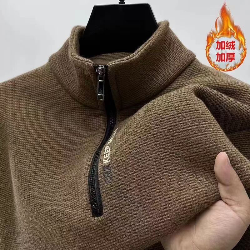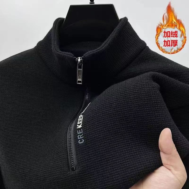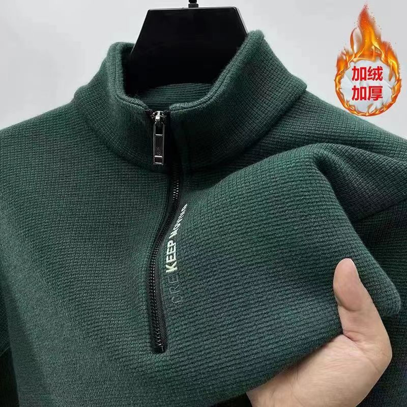 새로운 하프 지퍼 기모 두꺼운 스웨터 남성용 겨울 따뜻한 캐주얼 티셔츠 남성용 긴팔 스탠드 칼라 바닥 셔츠 탑