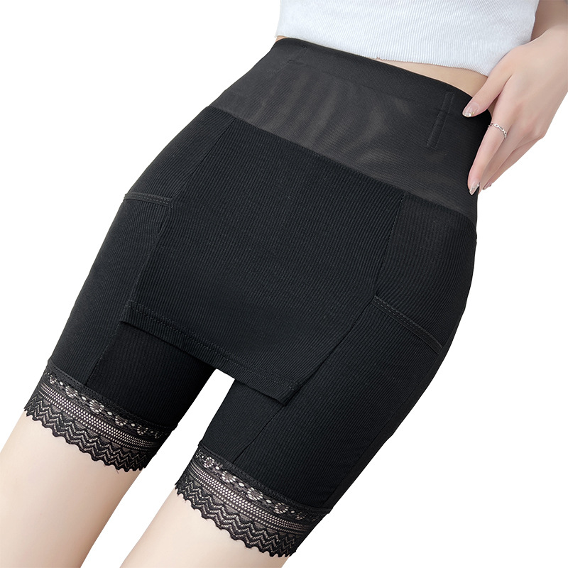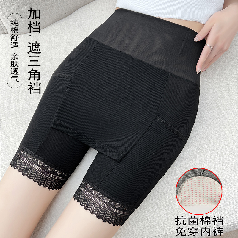 퓨어 코튼 안전 바지 여성 여름 차단 삼각형 영역 안티 노출 높은 허리 배 수축 구획 포켓 바닥 반바지가 얇은