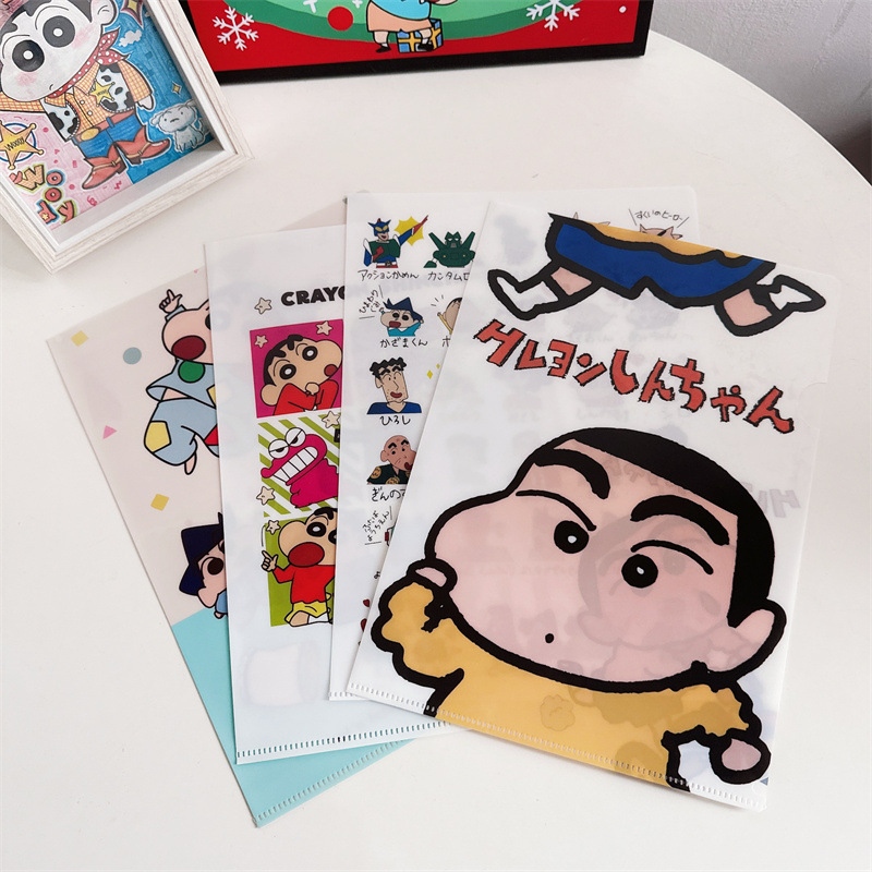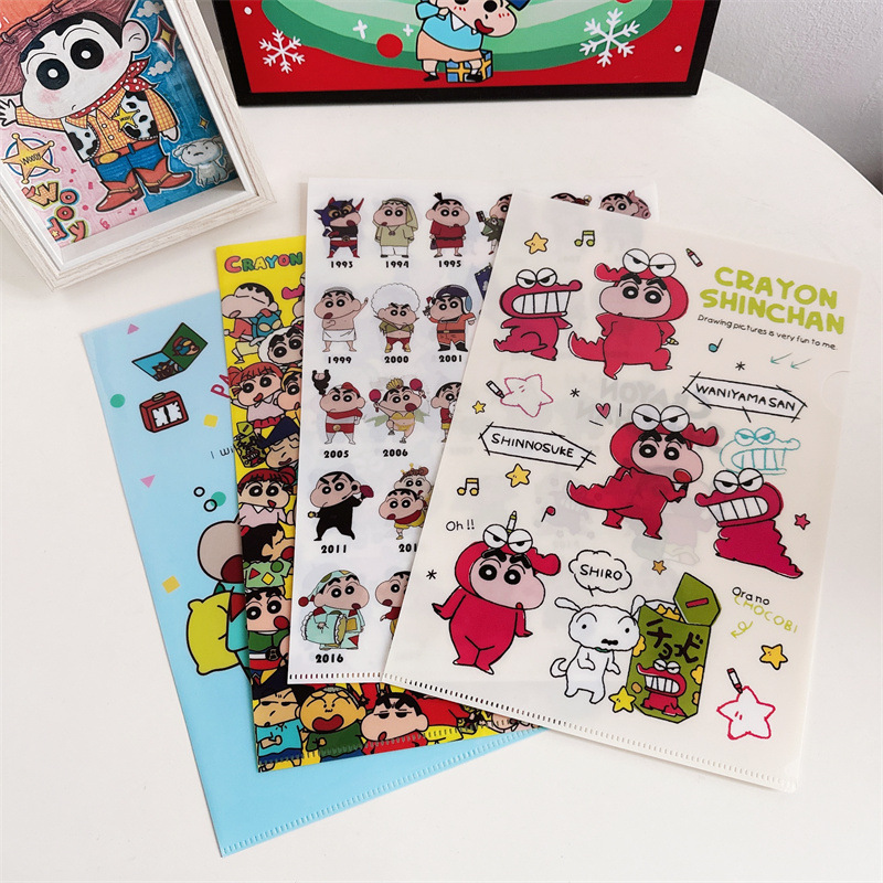 크레용신짱 L자형 파일 폴더, 예쁜 애니메이션 A4 시험지 보관 폴더, 문구류 파일 가방 정리