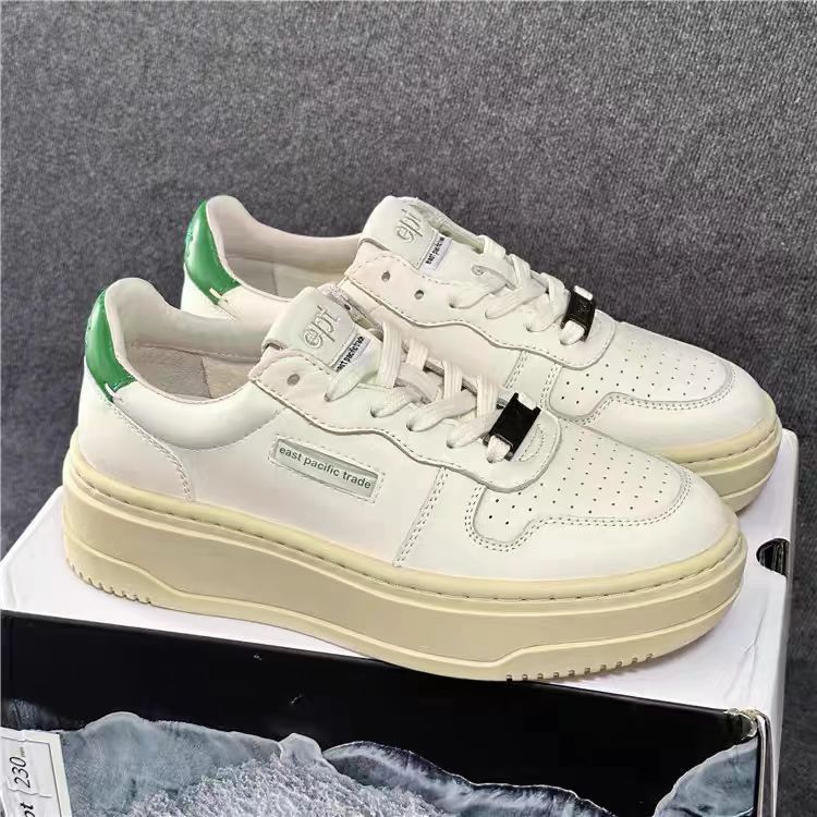 EPT 신발 두꺼운 바닥 흰색 신발 숨겨진 높이 가죽 올 매치 한국 캐주얼 보드 신발 2024 새로운 플랫폼 플랫폼 신발