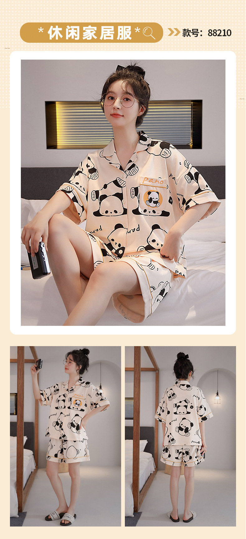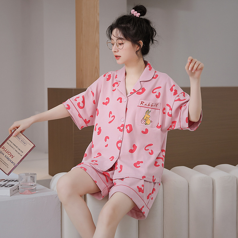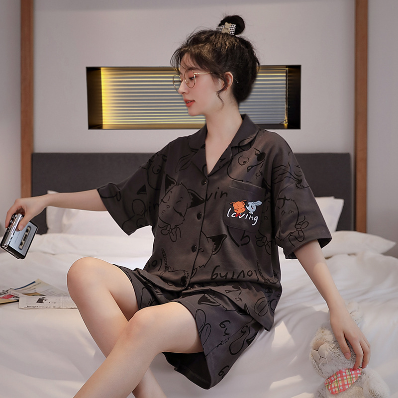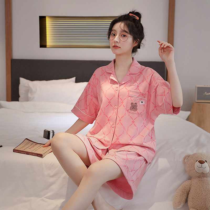 잠옷 여성 여름 카디건 옷깃 반팔 반팔 아웃도어 홈웨어 세트 인터넷 인기 여성 잠옷 여름