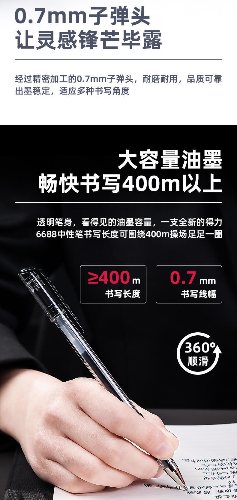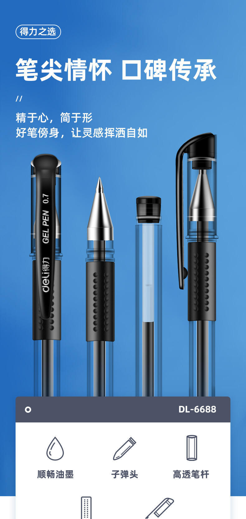 델리 6688 블랙 젤 펜 0.7mm 총알 대담한 서명 펜 사무실 용품 학생 워터 펜 블랙 펜