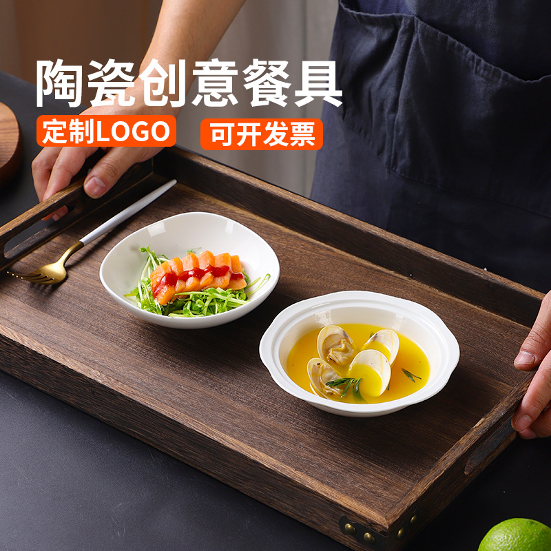 세라믹 접시 가정용 접시 창조적 인 그릇 판 화이트 플레이트 식기 요리 요리 과일 딤섬 그릇 차가운 접시