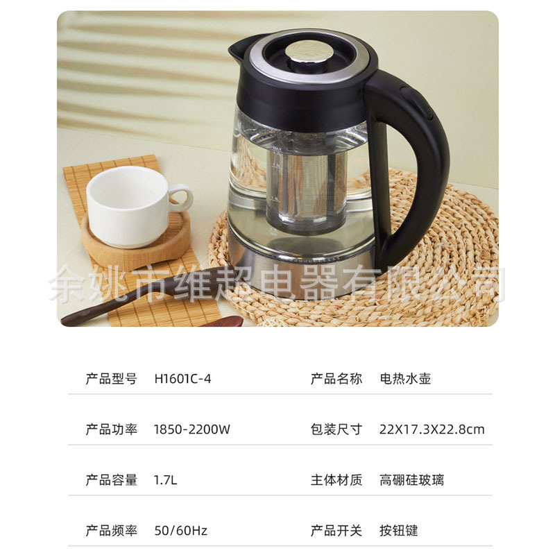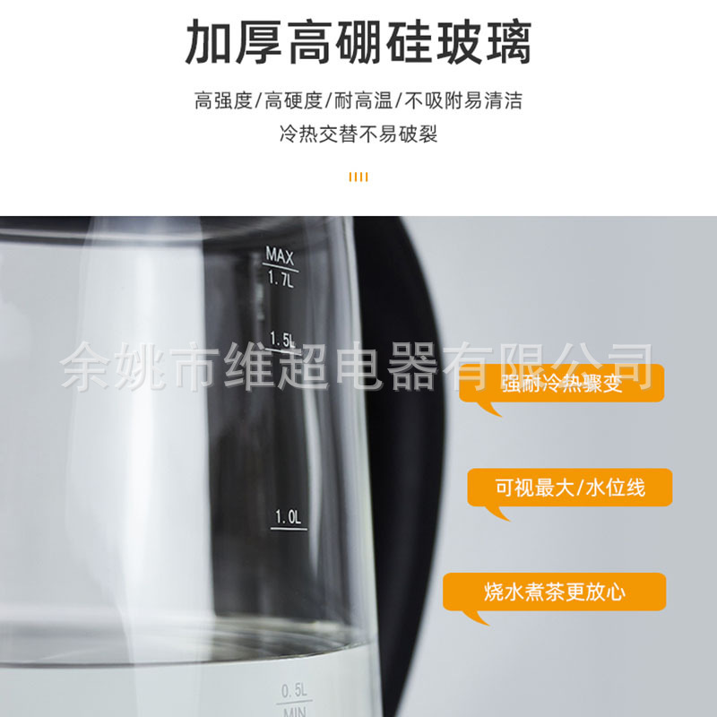 가정용 전기 주전자 화상 방지 대용량 고 붕규산 유리 주방 자동 전원 끄기 전기 주전자 주전자