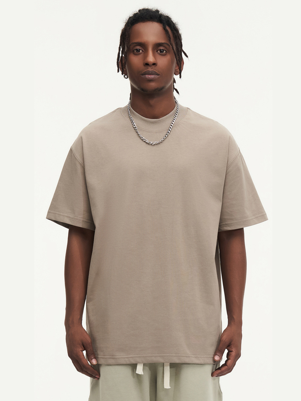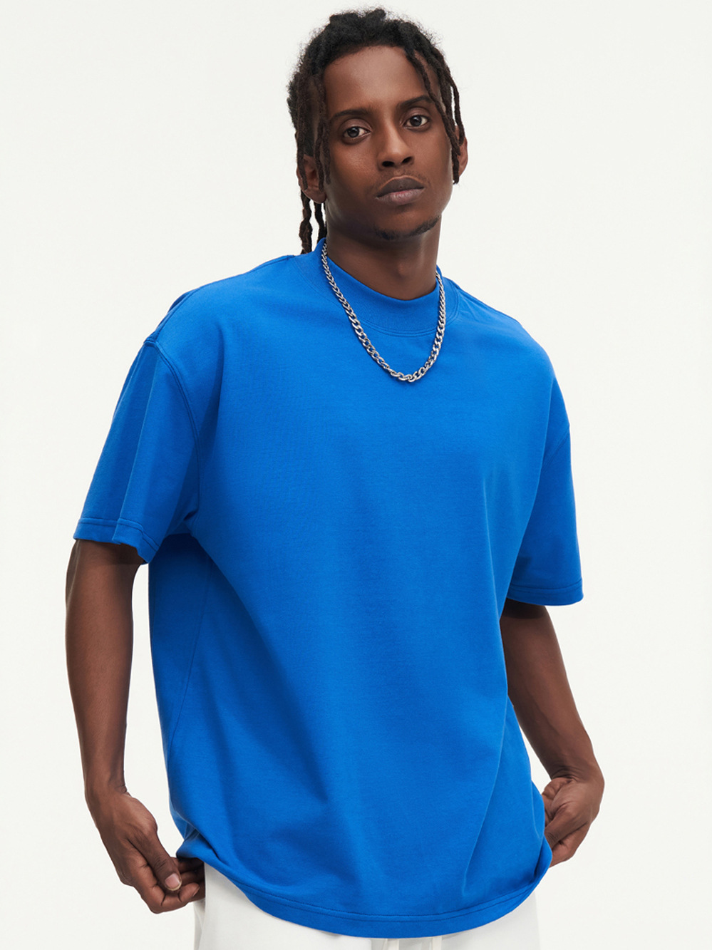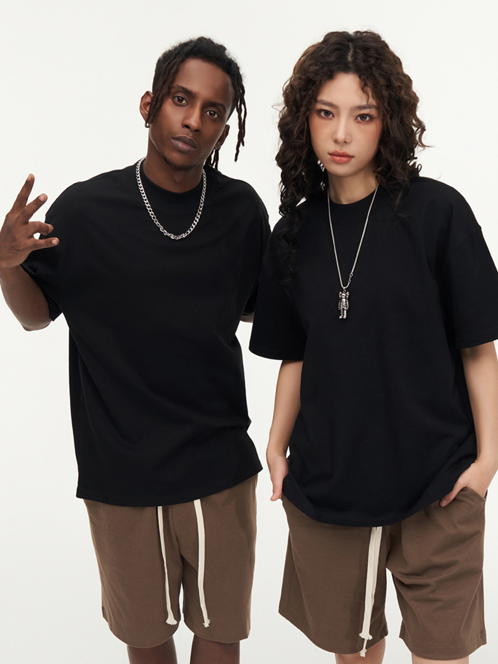 유럽과 미국의 국경 간 하이 칼라 퓨어 코튼 반팔 티셔츠 남자 여름 루즈 캐주얼 커플 힙합 스타일 올 매치 탑