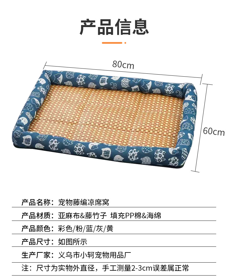 여름 매트 둥지 애완 동물 매트 먼지 방지 시원한 통기성 테디 골든 리트리버 고양이 침대 개 사육장 사계절 유니버설