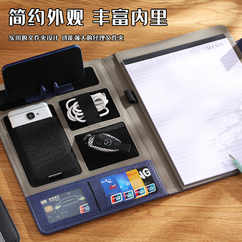 다기능 A4 폴더 사업 계약 관리자 클립 가죽 계약 패드 토크 단일 휴대 전화 홀더