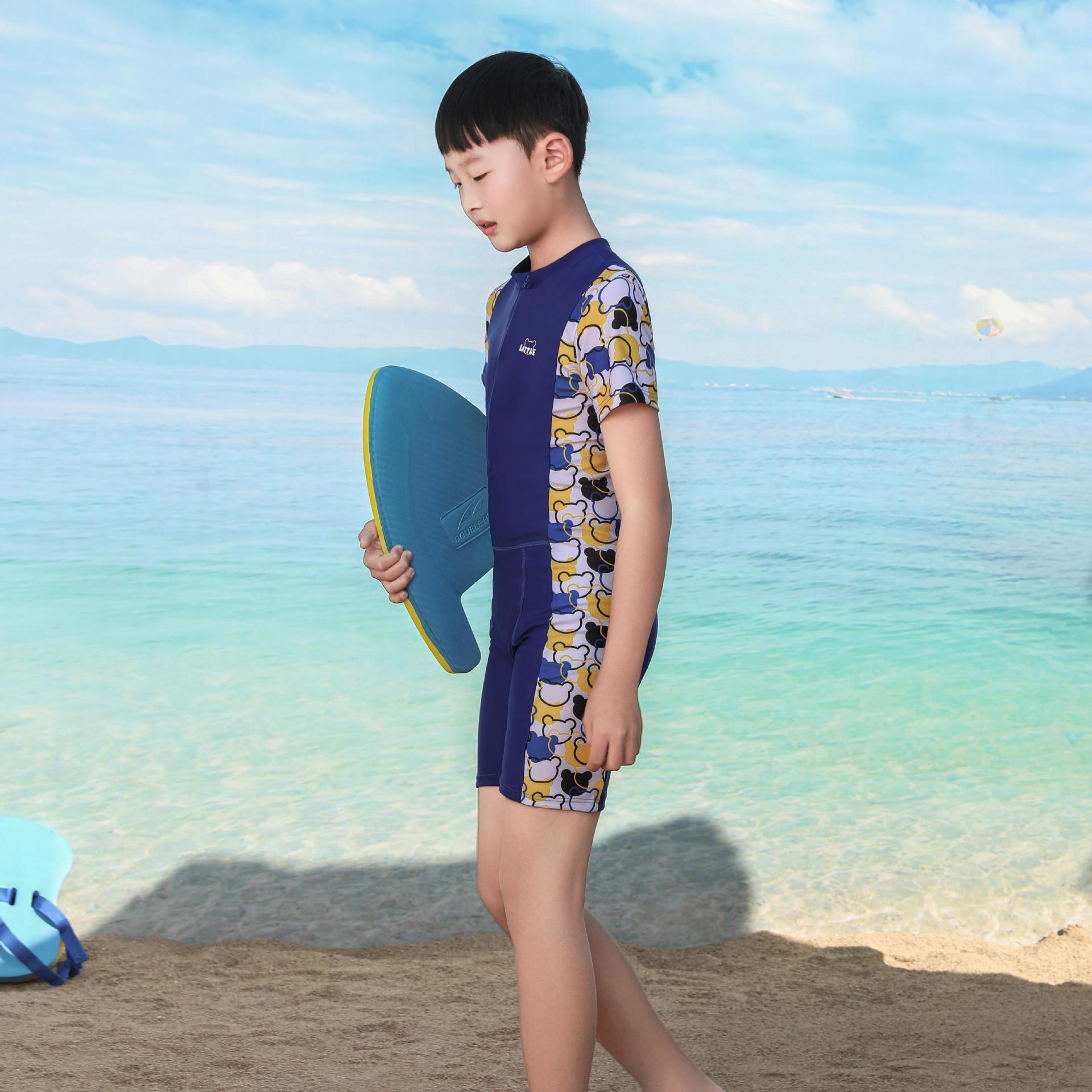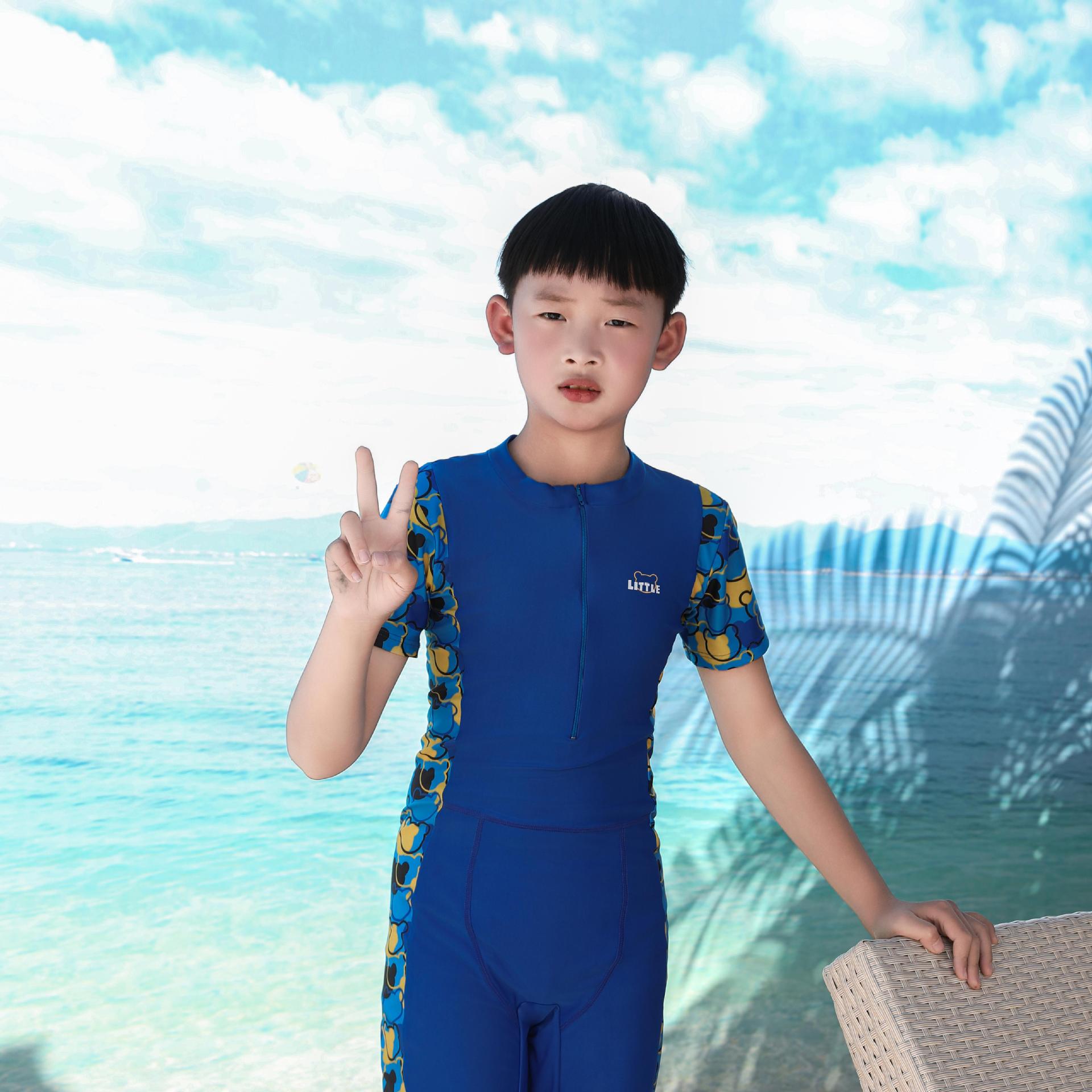 7)商品说明:动物图案数码印染不易脱落,久穿如新。卡通立体造型,童趣可爱。A类面料,面料安全柔软舒服,弹性佳,贴身舒适。防晒指标UPF50+,有效防止紫外线