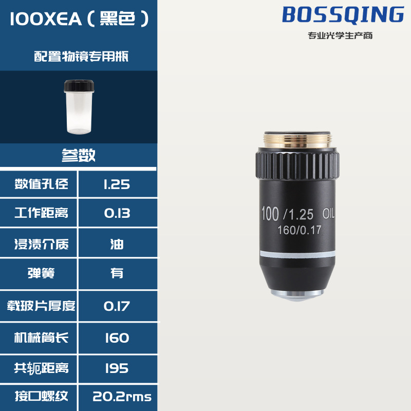 195mm 콘젝트 생물학적 현미경 렌즈 20.2RMS 나사형 검정색 4X10X20X40X60X100X