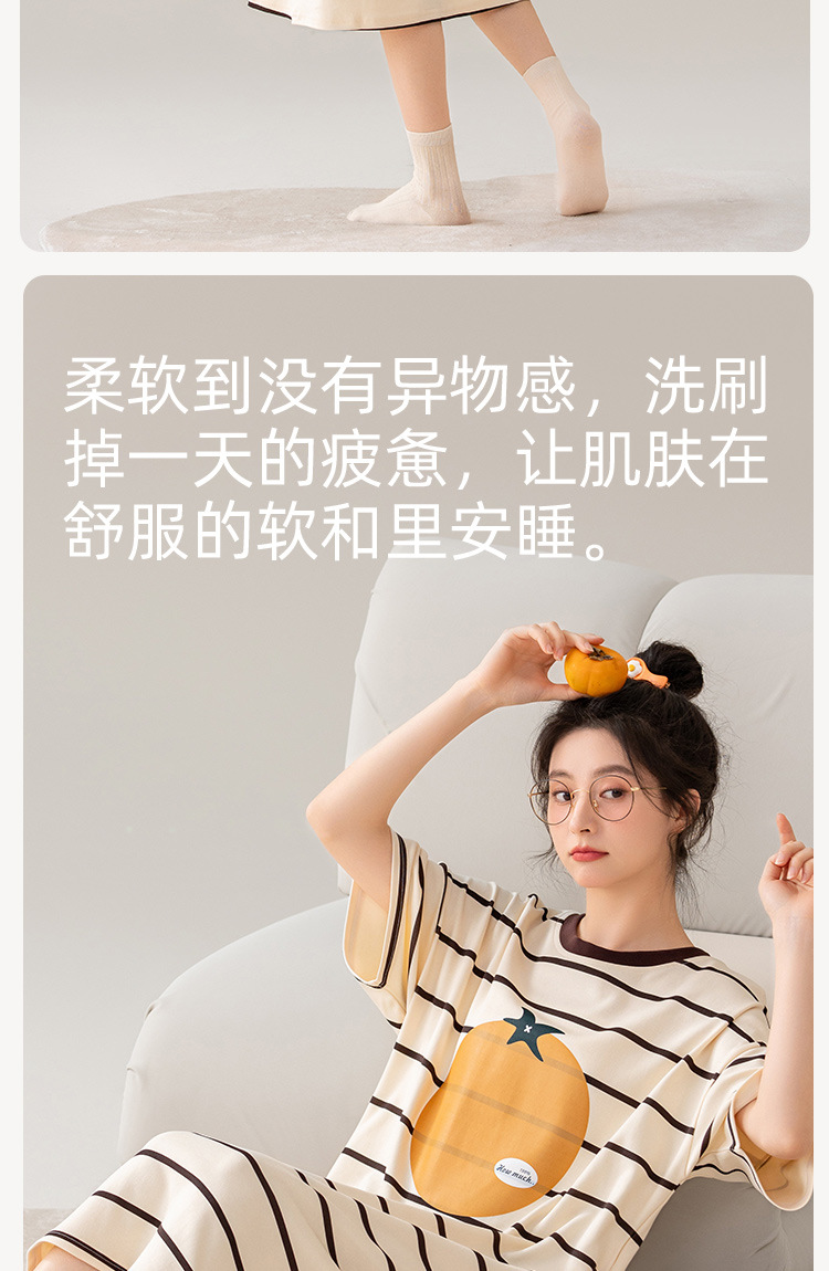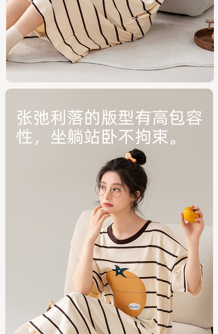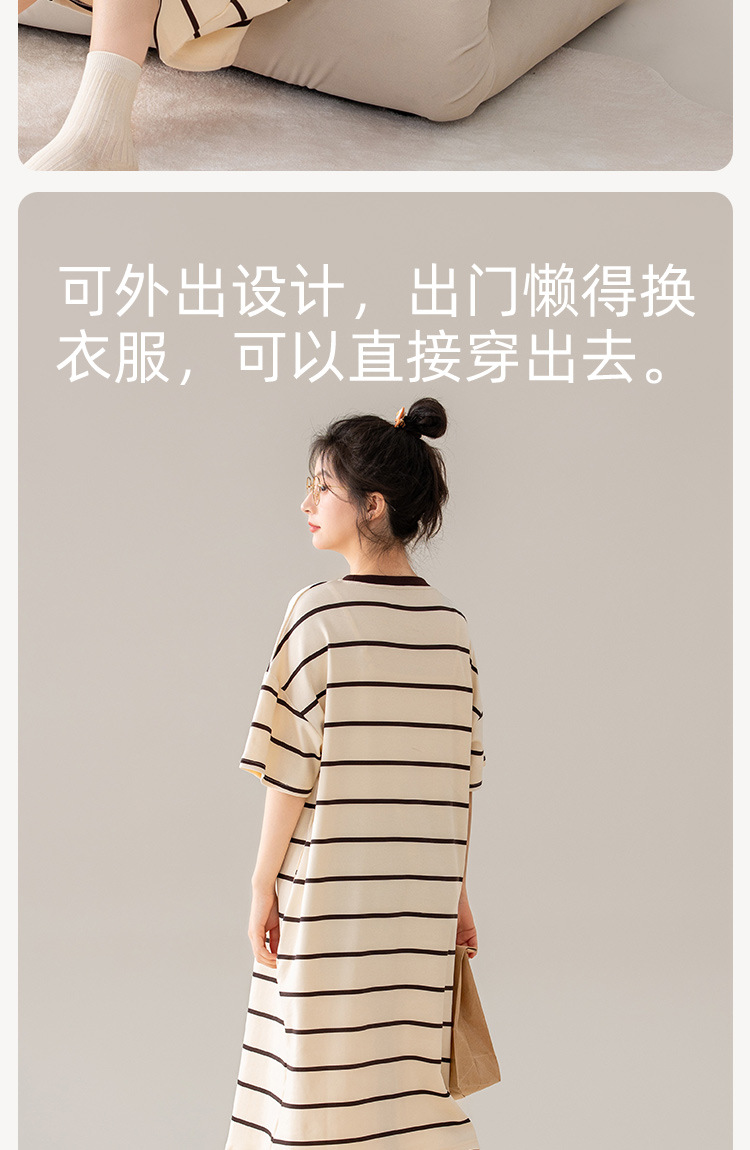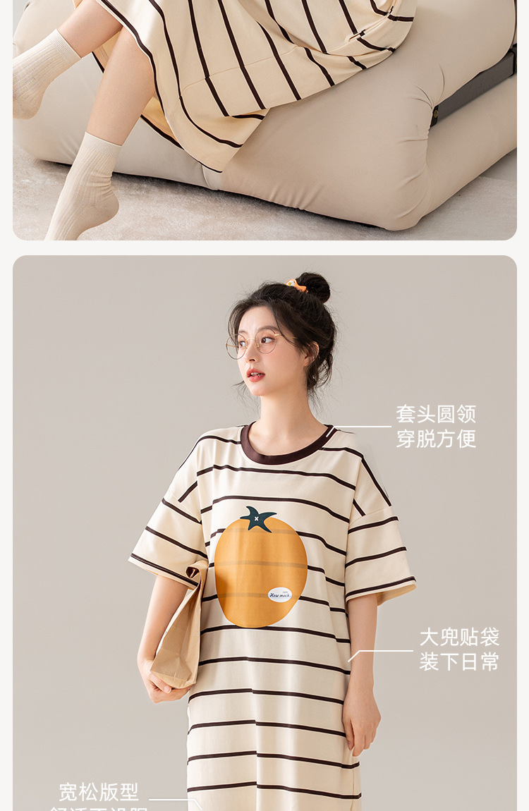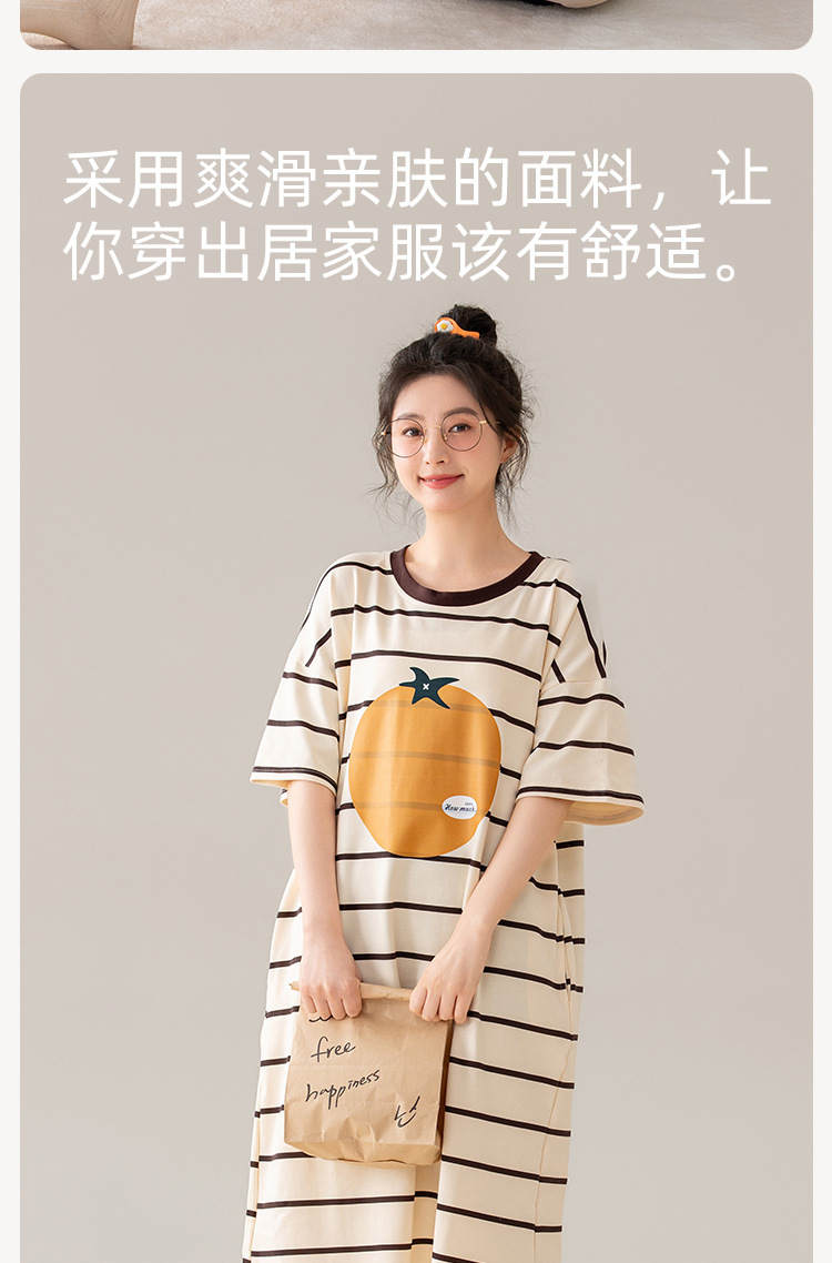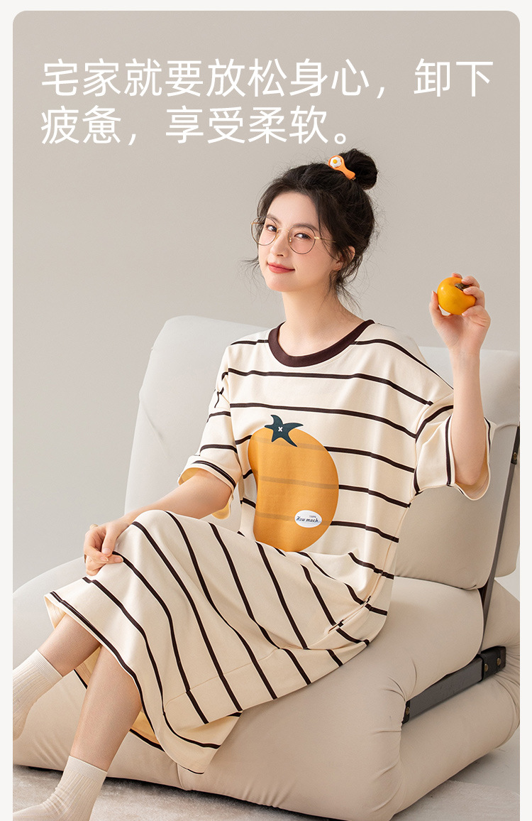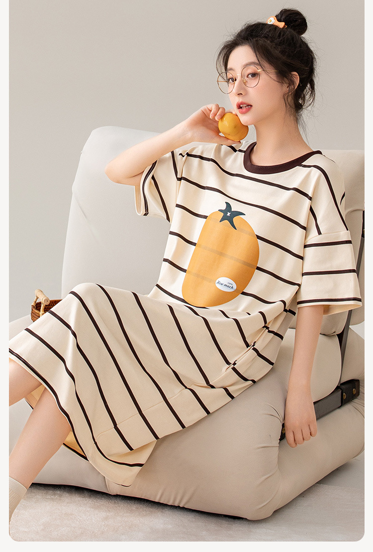 나이트 드레스 여성의 여름 코튼 반팔 홈 의류 잠옷 달콤한 귀여운 만화 코튼 중간 길이 원피스