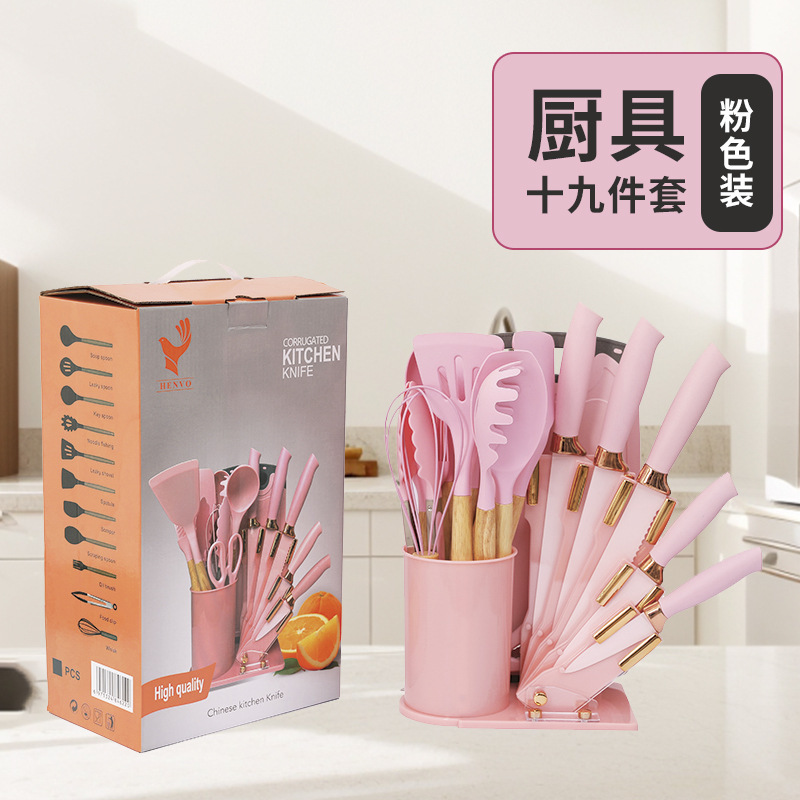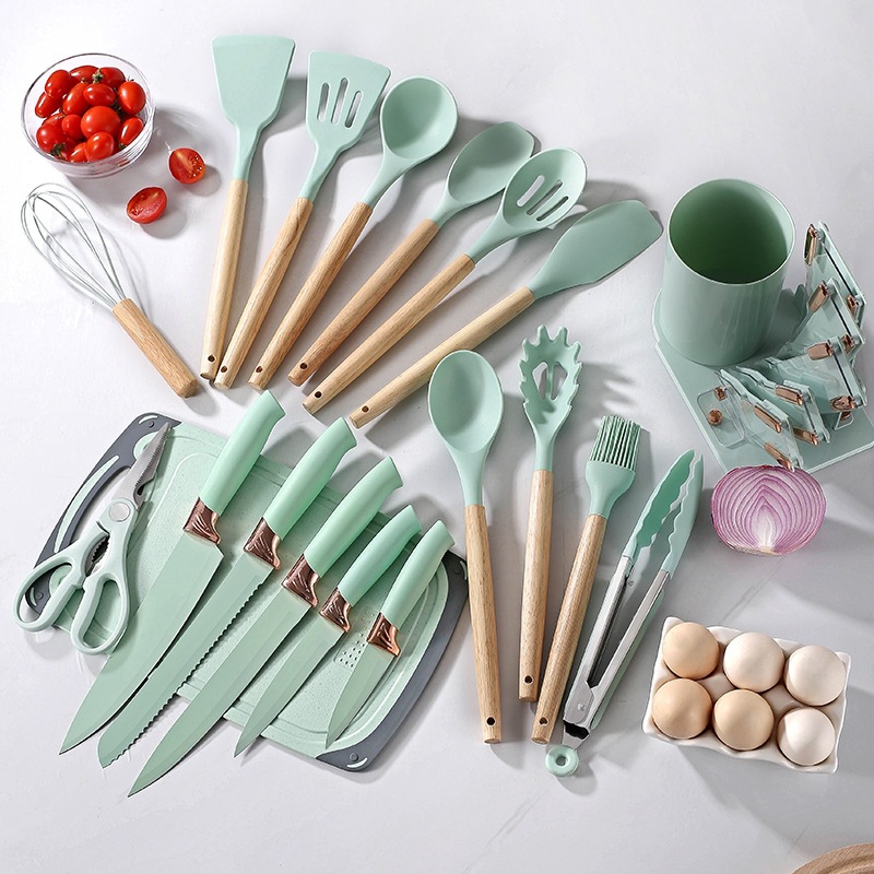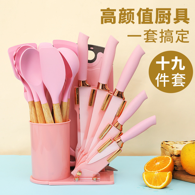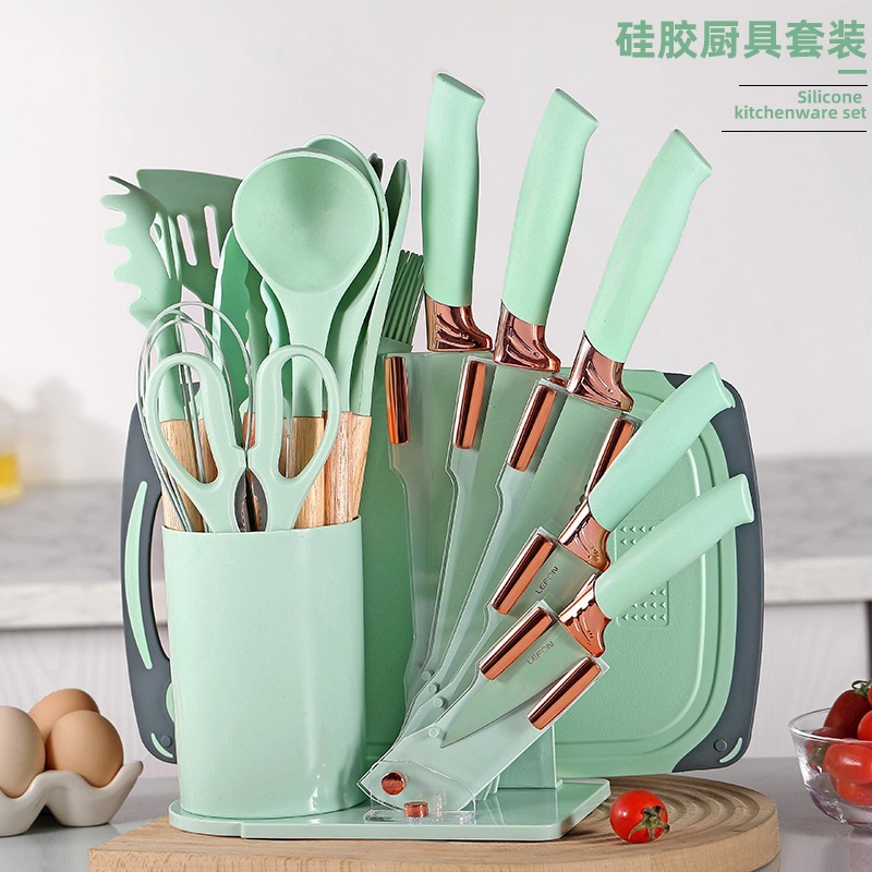 새로운 아크릴 실리콘 주방용품 19 조각 세트 칼 세트 비 스틱 요리 실리콘 스페이드 스푼 저장 배럴 세트