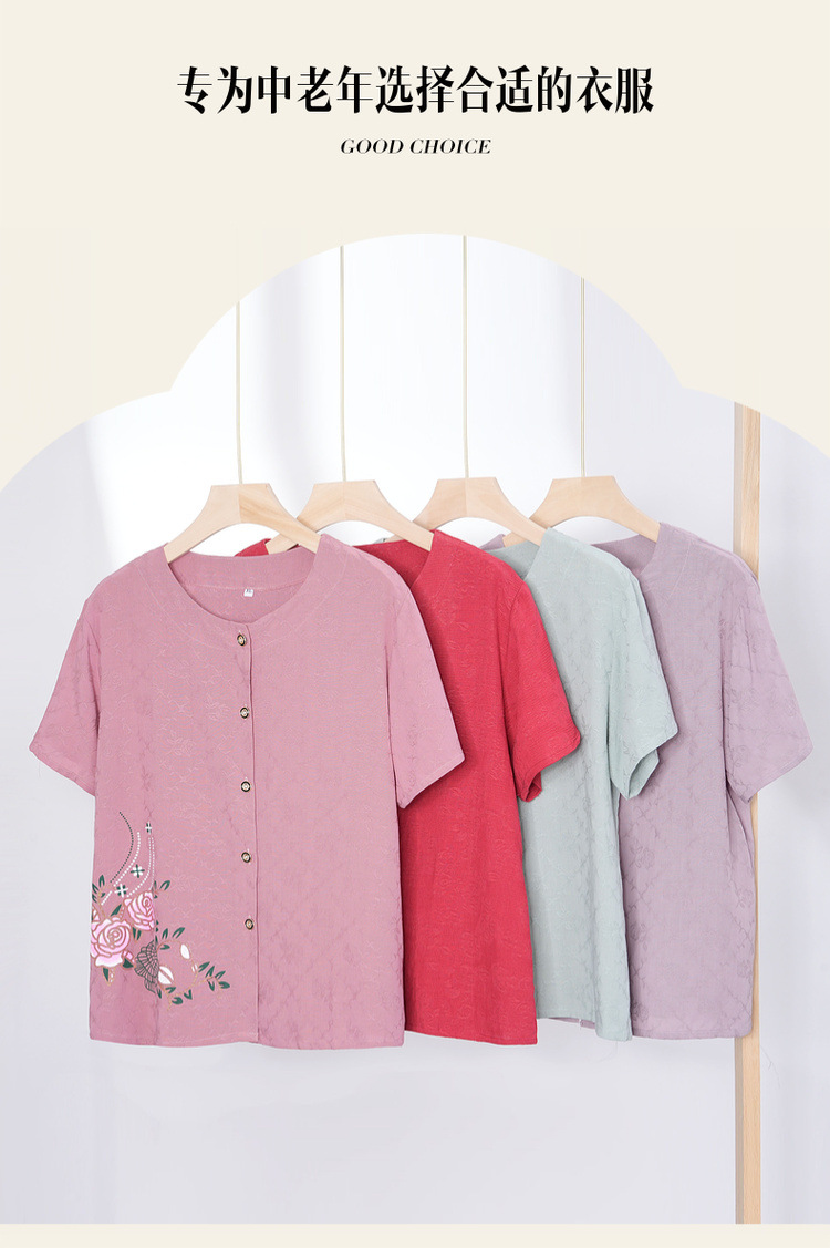 중년 및 노인 얇은 카디건 여성 할머니 여름 자카드 반팔 세트 어머니면 실크 둥근 목 상단 투피스 세트