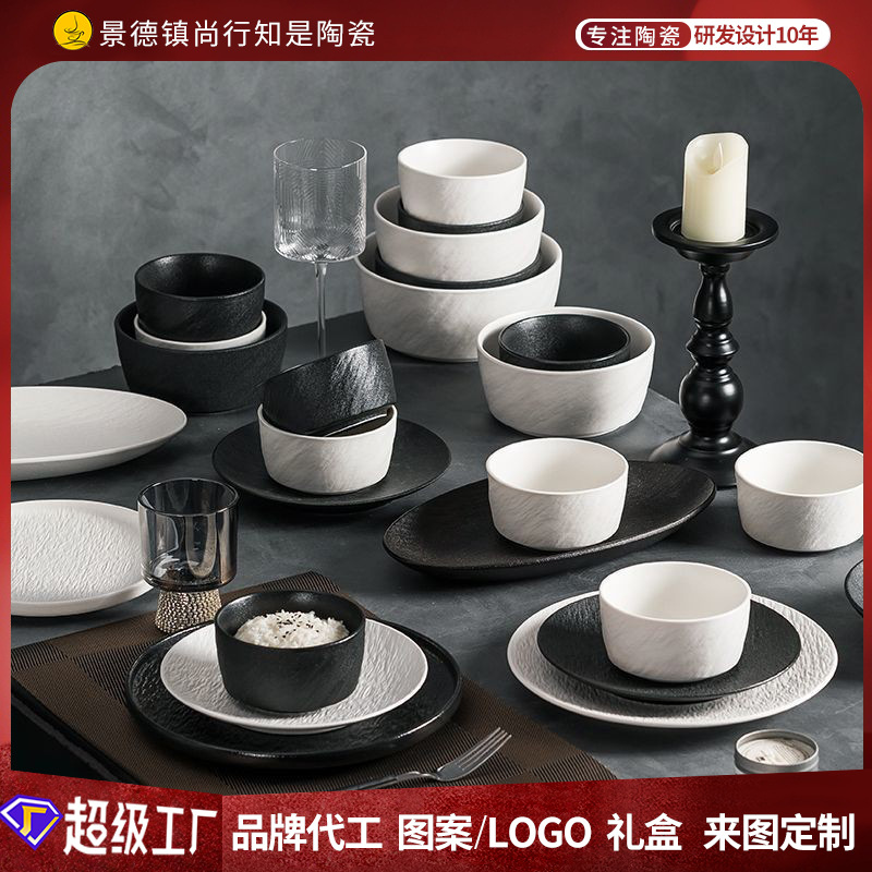가정용 2024 새로운 스타일 하이 엔드 라이트 럭셔리 콜드 푸드 웨스턴 푸드 플레이트 식기 세라믹 밥 그릇 네트 보울 플레이트 접시 딥 플레이트