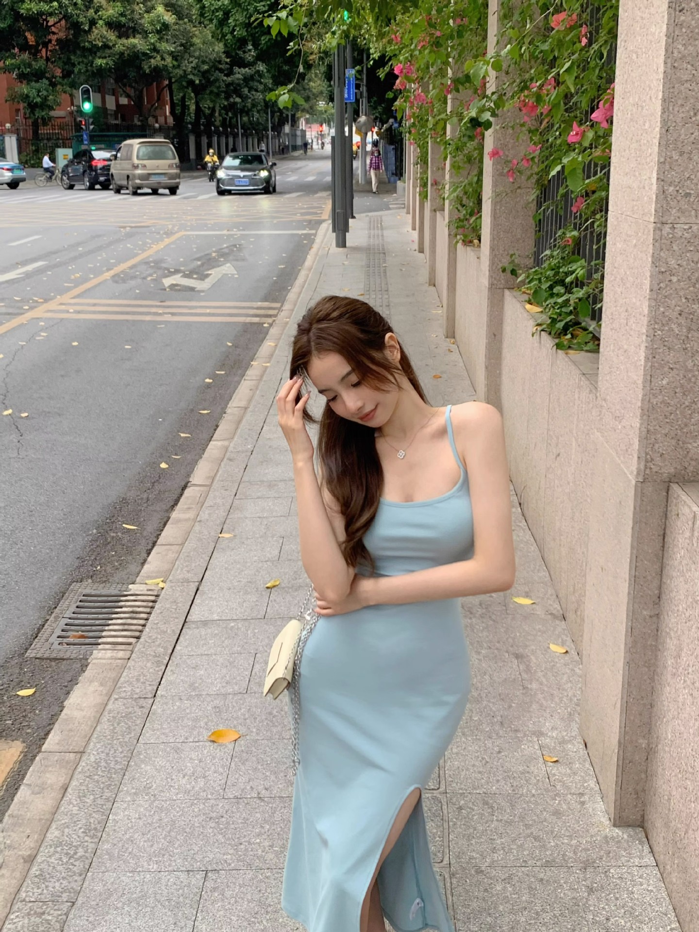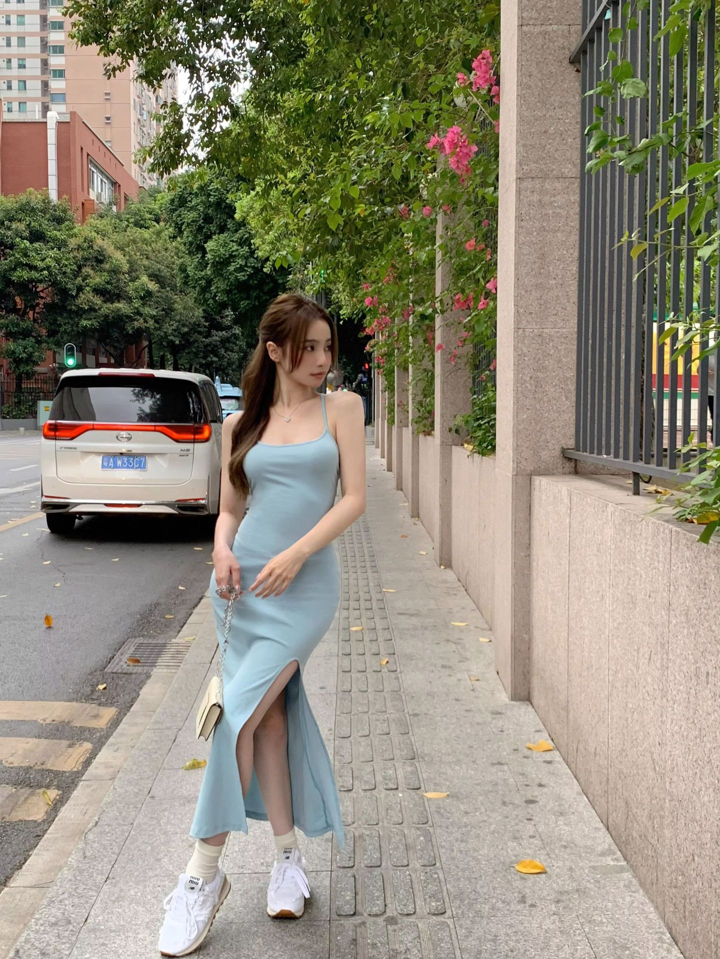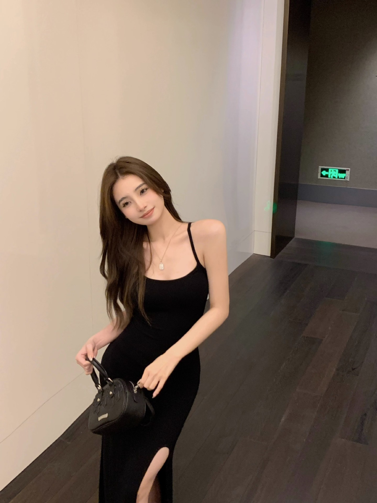 G-156 (백리스 스트랩 슬릿 롱스커트