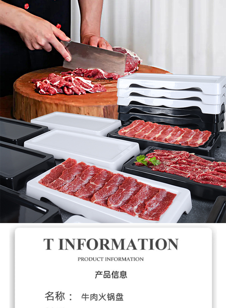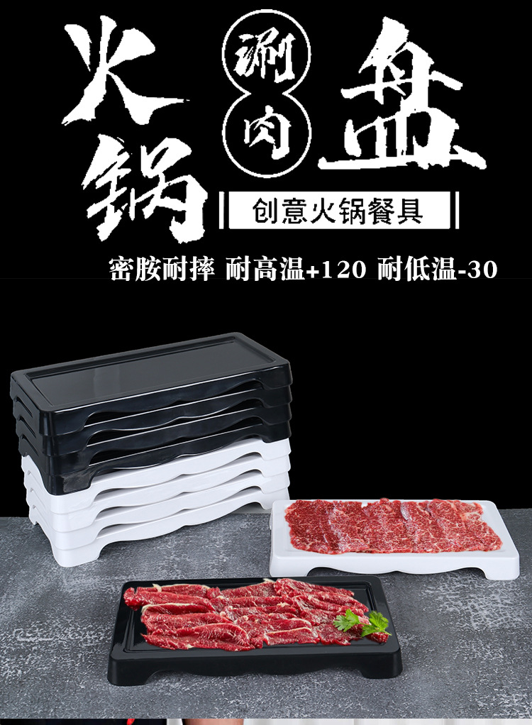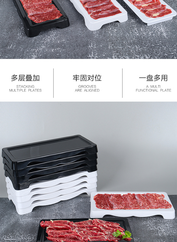 차오산 신선한 쇠고기 냄비 접시 상업 멜라민 직사각형 냄비 브러시 고기 플레이트 평판 쌓을 수있는 바베큐 플레이트