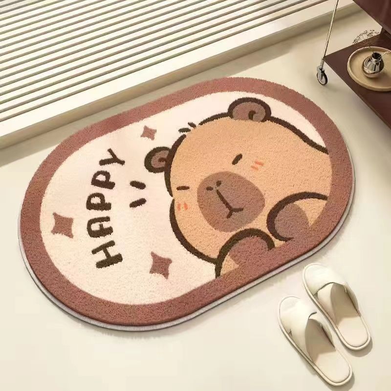 Capibala 모조 캐시미어 욕실 바닥 매트 가정용 흡수성 및 먼지 방지 미끄럼 방지 매트 욕실 문 두꺼운 냉각 매트