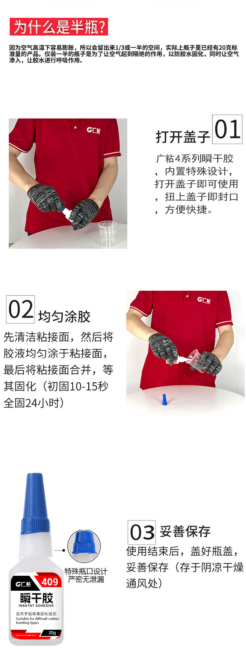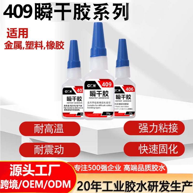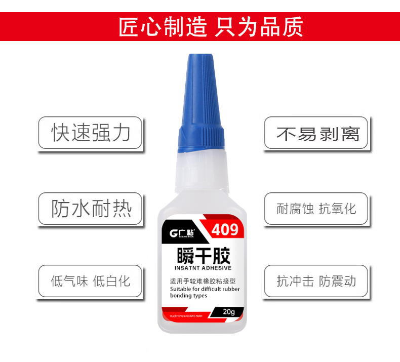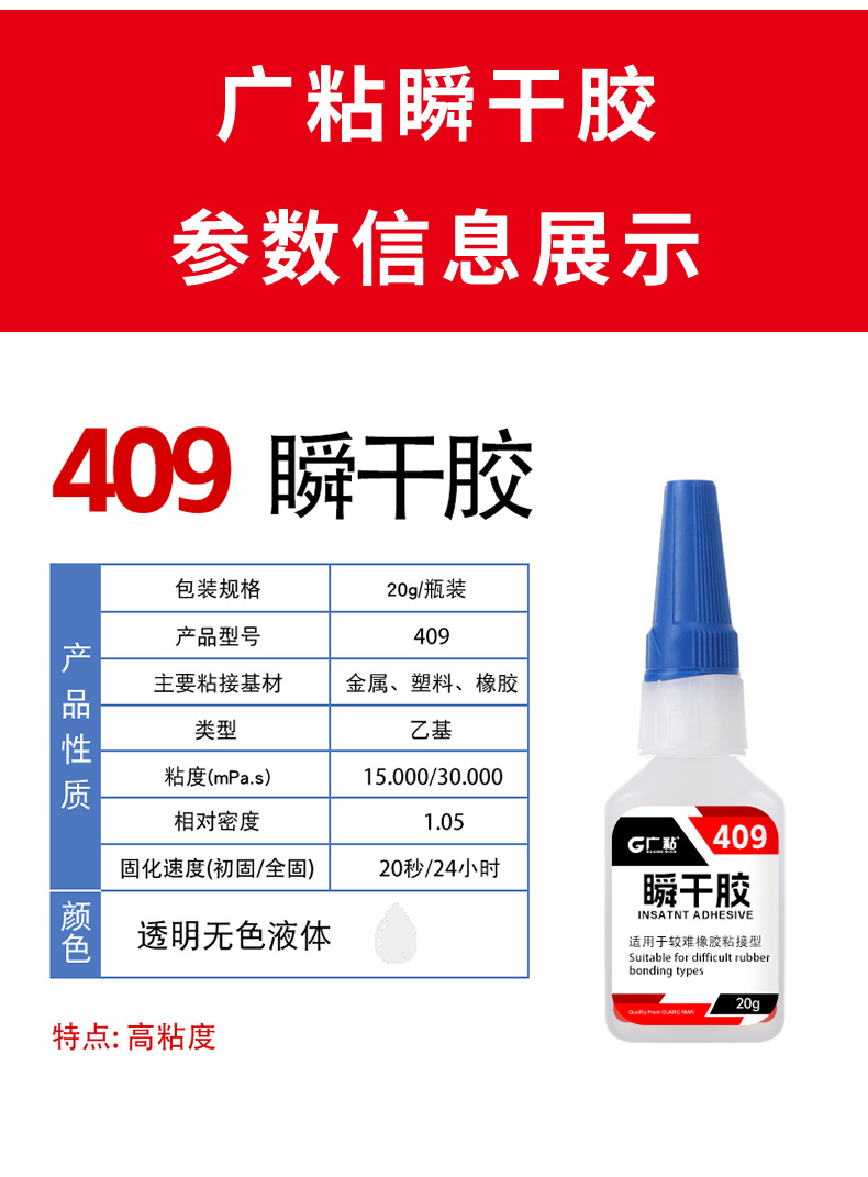 广粘409瞬干胶金属塑料橡胶粘接低粘度通用速干胶厂家生产铝管装