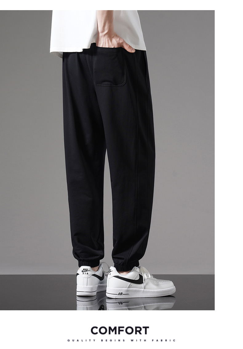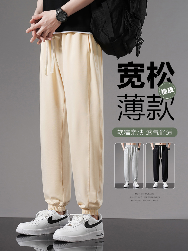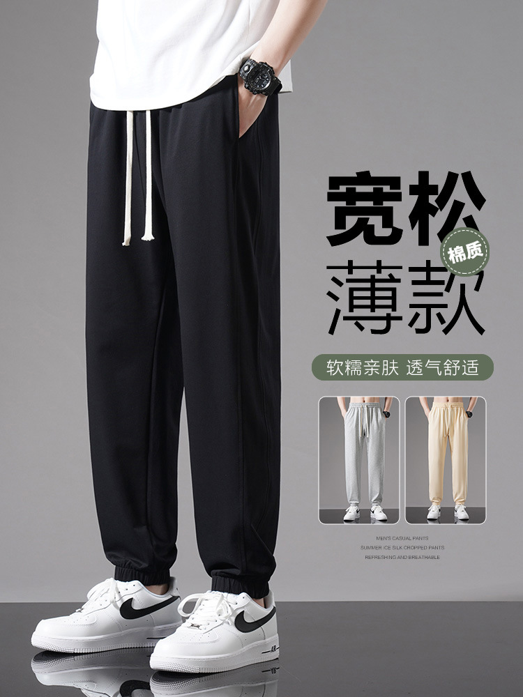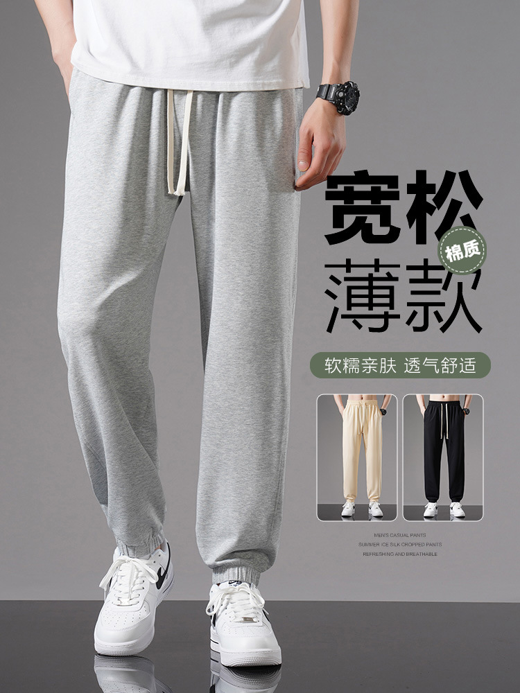 스웨트 팬츠 남자 여름 얇은 스포츠 캐주얼 바지 남자 면 느슨한 직선 다리 십대 자른 바지 남자