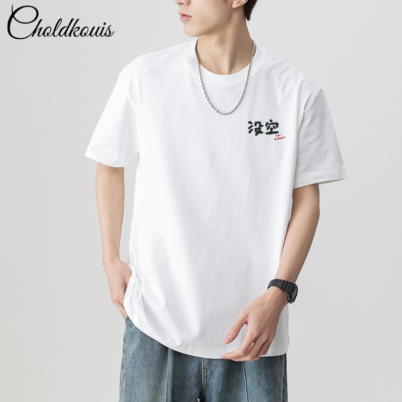 헤비 코튼 반팔 티셔츠 남성용 라운드 넥 루즈 남성용 퓨어 화이트 바닥 셔츠 여름 내부 착용을위한 2025 새로운 티셔츠