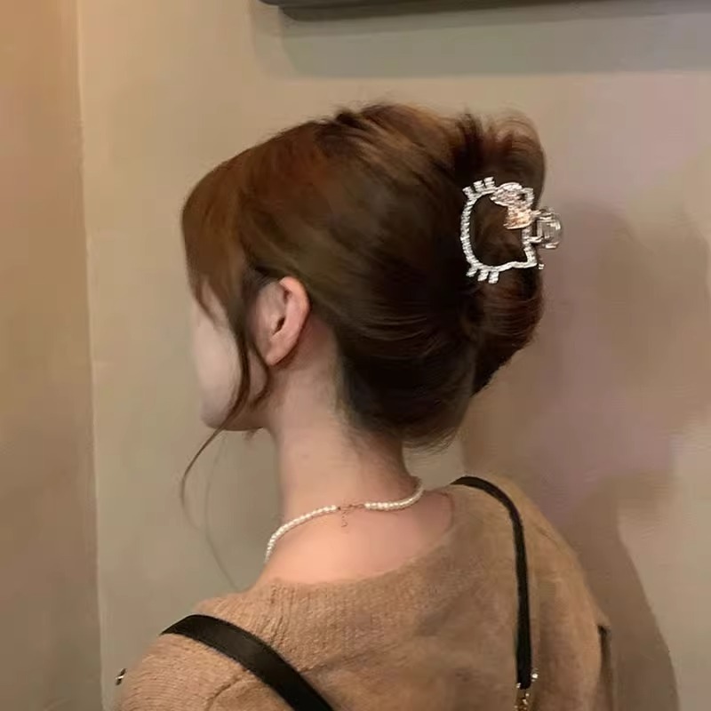 금속 플래시 드릴 헬로 키티 그랩 클립 헬로 키티 라인스톤 헤어 그랩 상어 클립 디스크 헤어 클립 백 헤드 헤어 액세서리