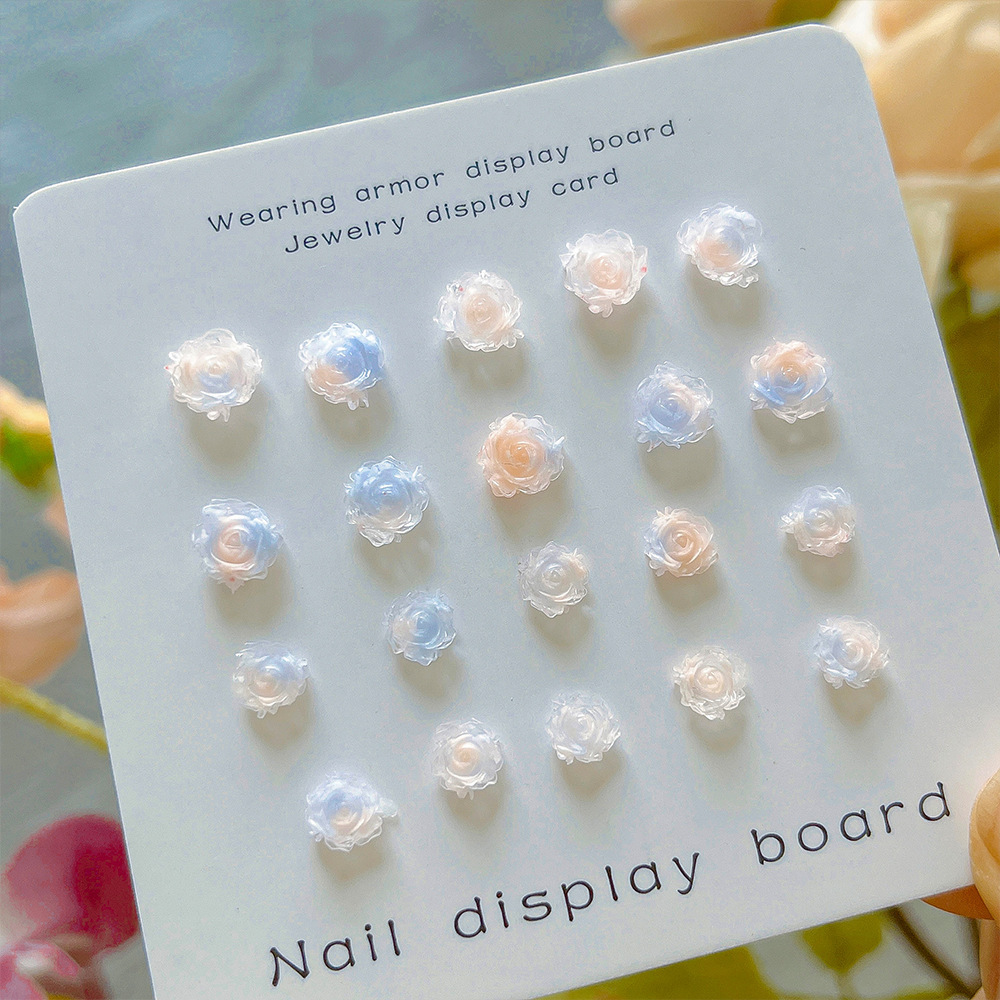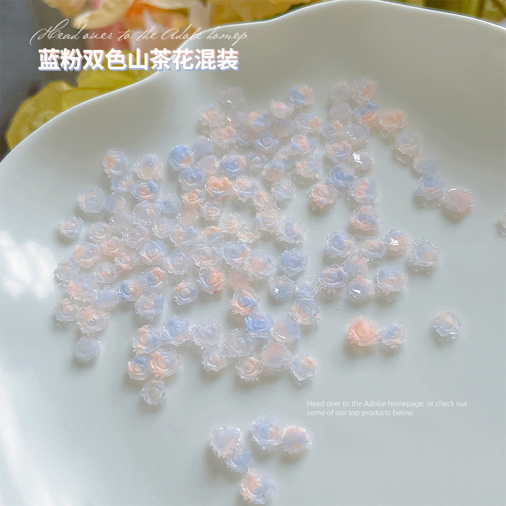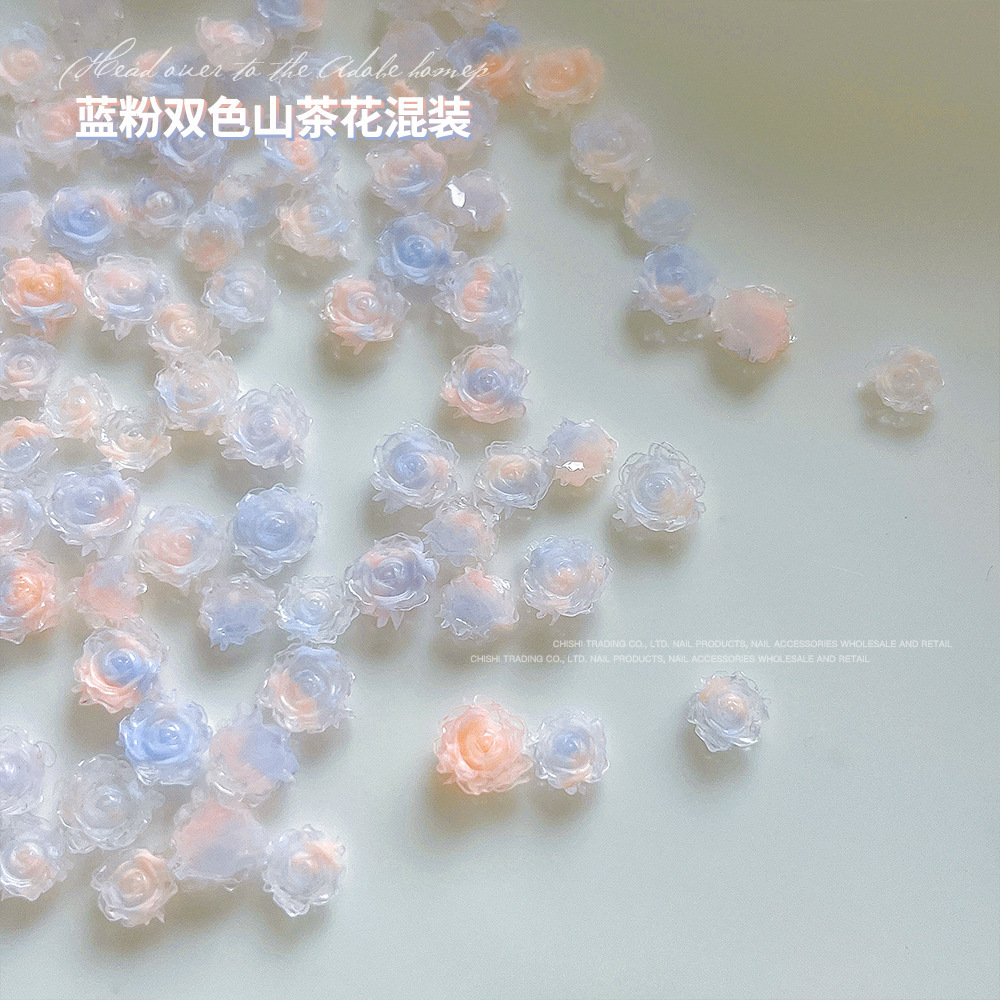 새로운 블루 파우더 동백 매니큐어 쥬얼리 그라디언트 헤일로 얼음을 통해 그물 레드 로즈 스테레오 네일 장식 도매