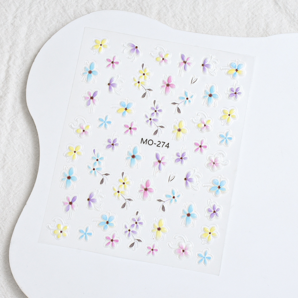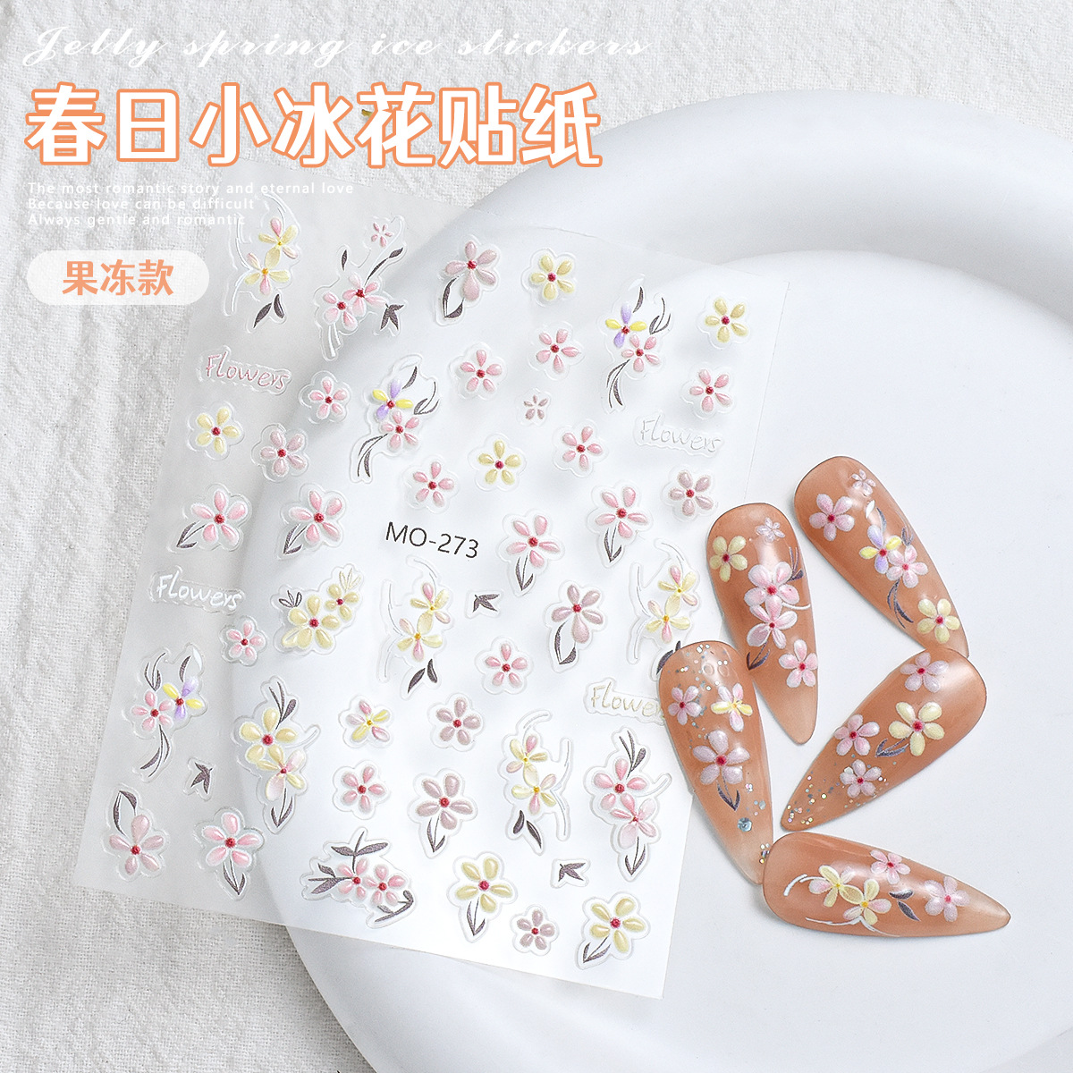 매니큐어 스티커 인터넷 작은 얼음 꽃 스테레오 마카롱 핑크 벚꽃 5 꽃잎 꽃 스티커 접착제 네일 장식