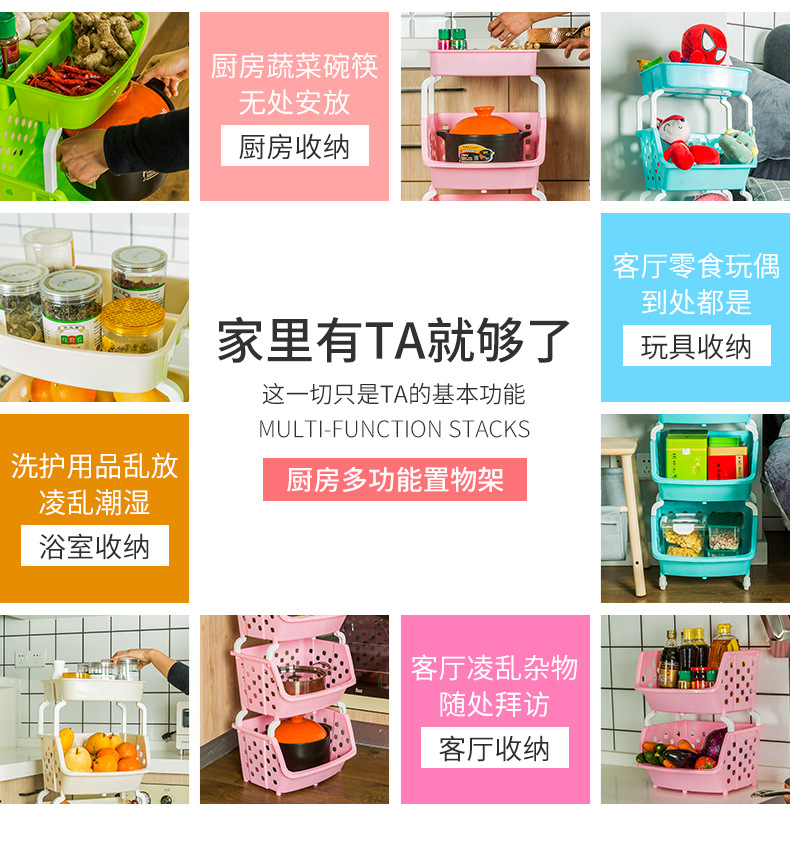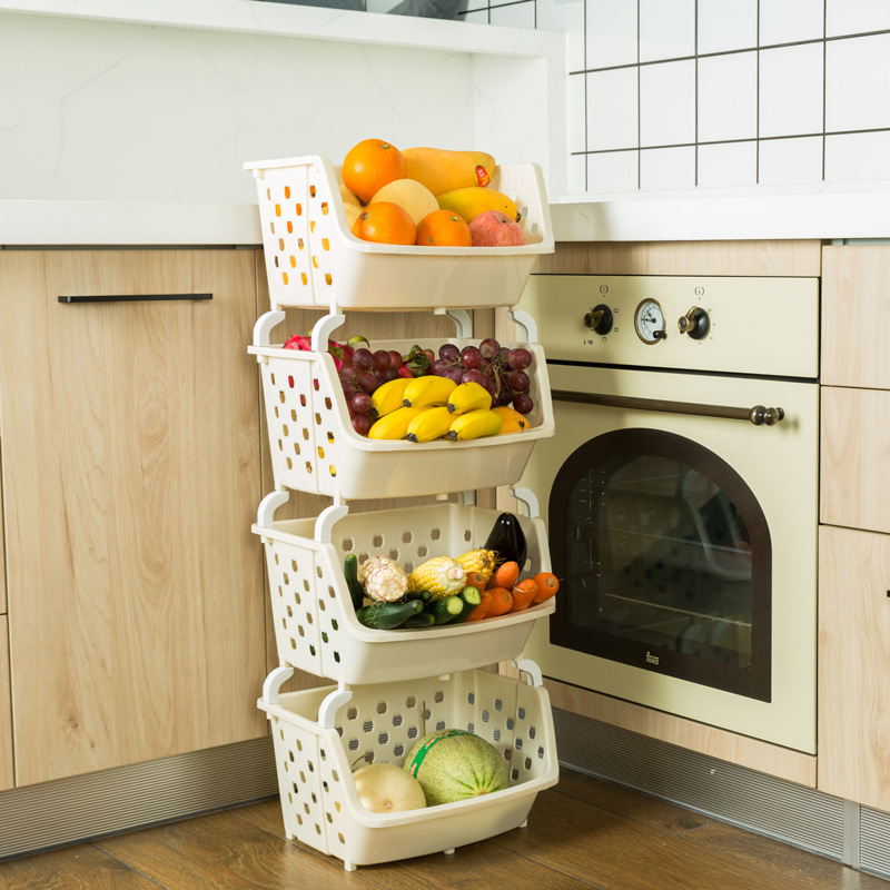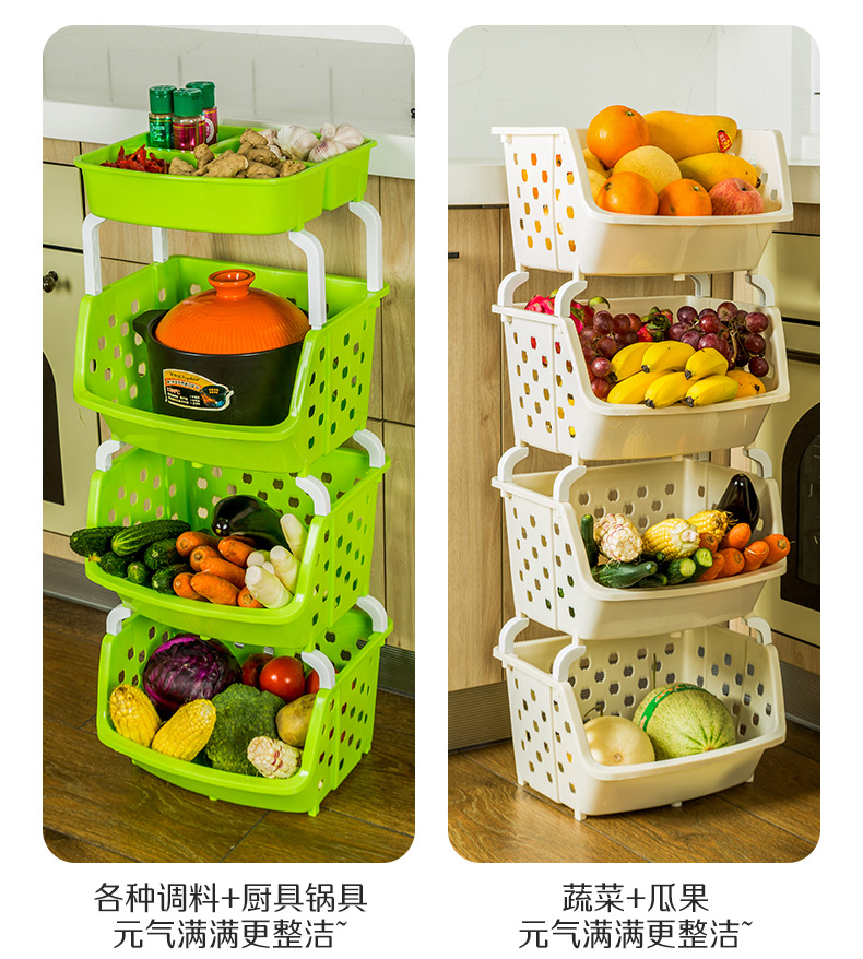 주방 스토리지 랙 스토리지 랙 바닥 스탠딩 플라스틱 다층 주방 용품 저장 바구니 보관 랙 야채 바구니 가정용