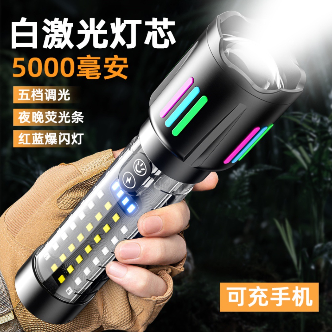 손전등 발광 스트립 슈퍼 밝은 장거리 내장 충전식 배터리 경고등 야외 캠핑 비상 손전등