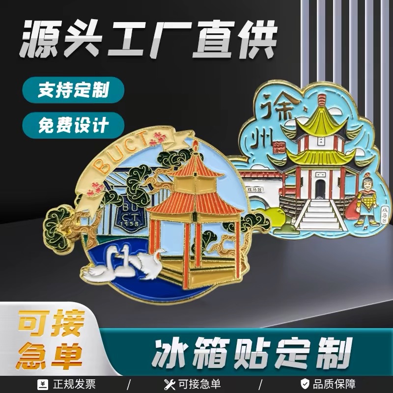 금속 페인트 에나멜 냉장고 스티커 도시 랜드 마크 명승지 냉장고 스티커 맞춤형 기업 학교 만화 자석