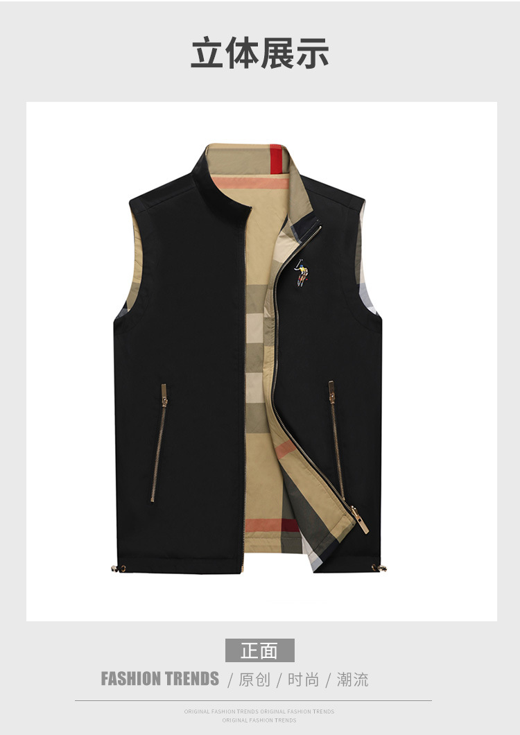 폴 브랜드 남성 스탠드 칼라 조끼 새로운 느슨한 플러스 사이즈 비즈니스 캐주얼 양면 양복 조끼 하이 엔드 조끼 재킷