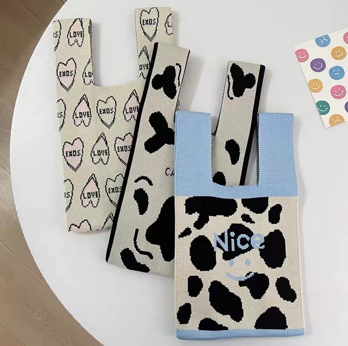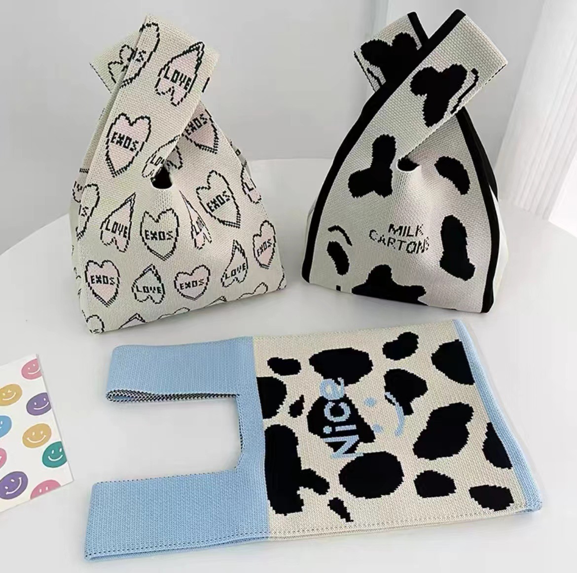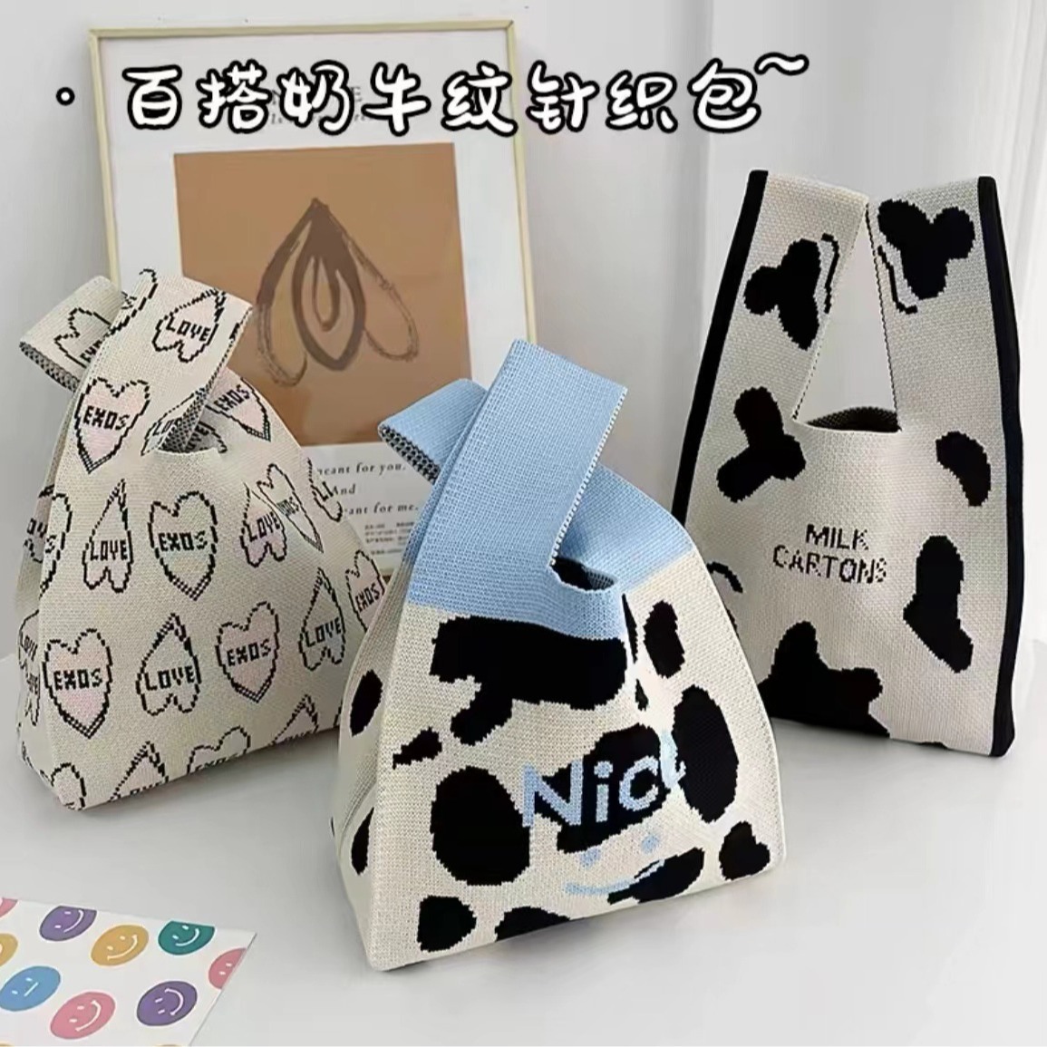 2024 봄과 여름 한국 스타일 대용량 소형 가방 니트 가방 여성용 캐주얼 토트 백