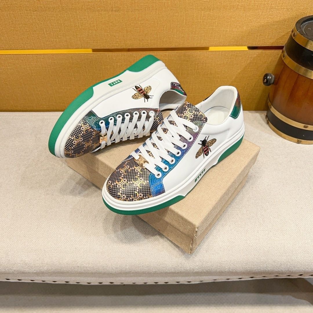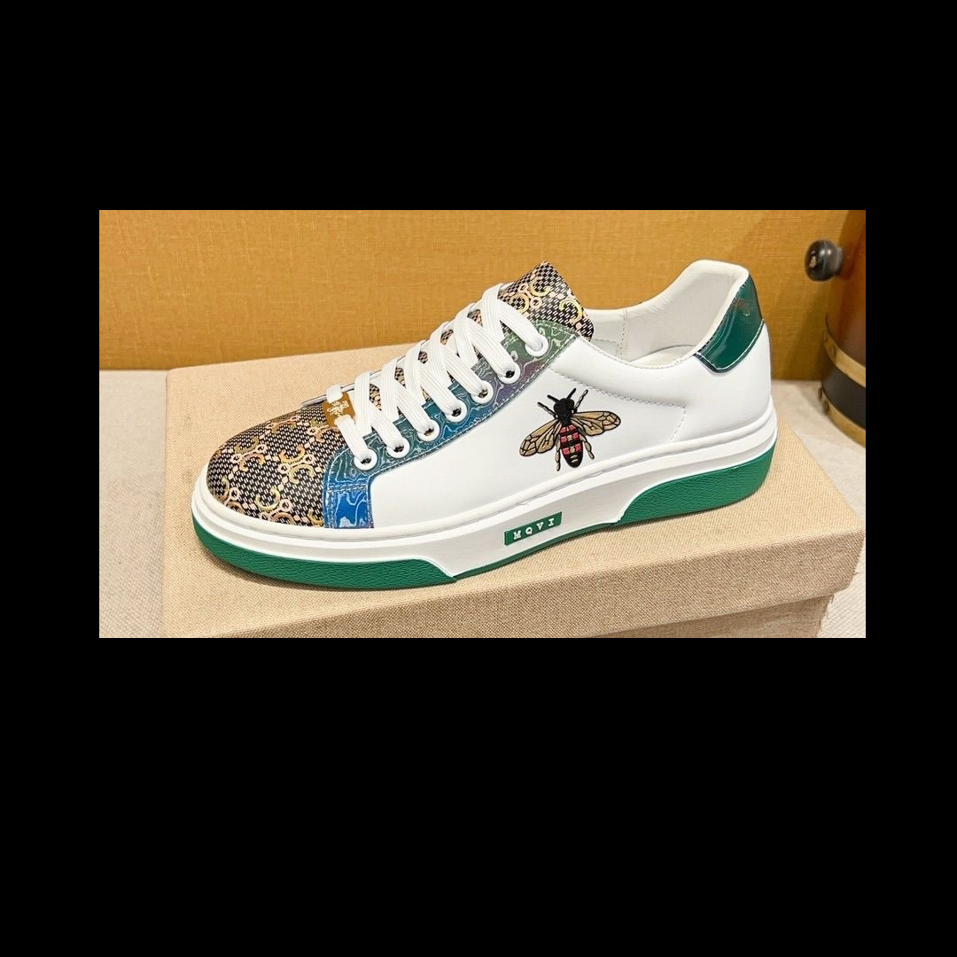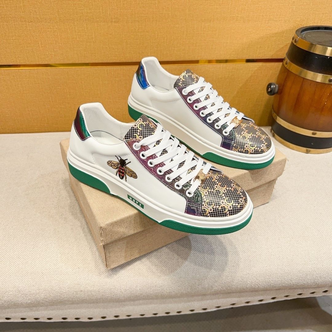 유럽 역 정품 가죽 남성 신발 꿀벌 캐주얼 신발 올매치 트렌디 슈즈 Kuqi 화이트 슈즈 럭셔리 하이 엔드 플레이트 슈즈