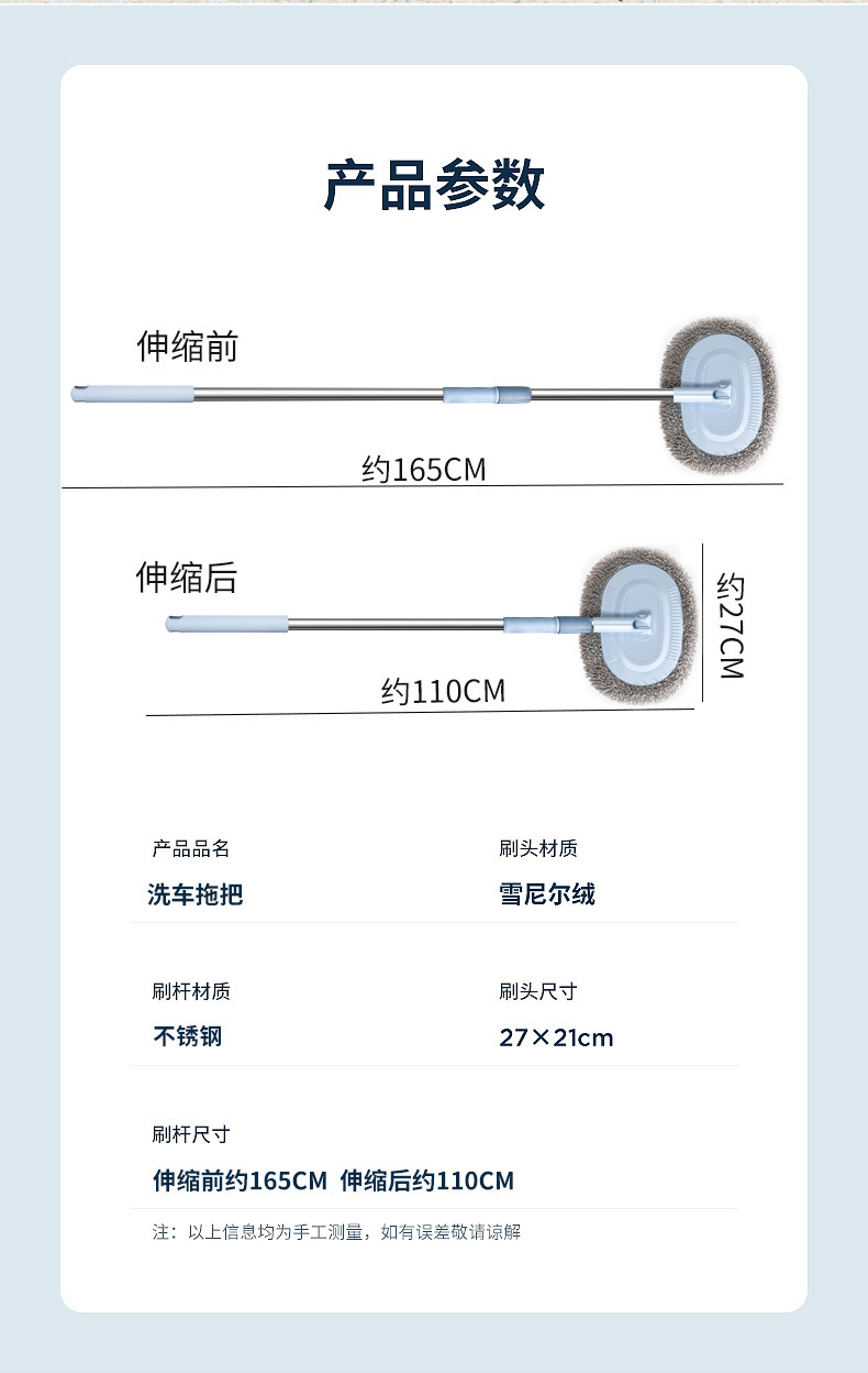 【产品尺寸】:伸缩前约110cm 伸缩后约165cm 刷头约27*21CM