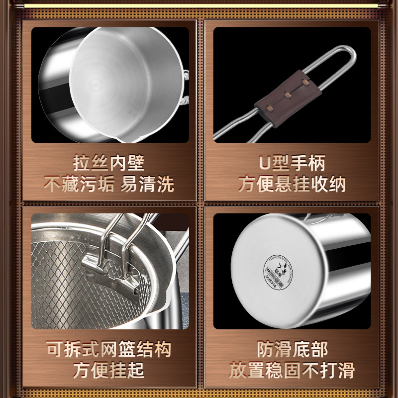 316 스테인레스 스틸 프라이어 야외 분리 가능한 핸들 프라이어 문자열 프라이어 필터 유도 밥솥 지방 프라이어