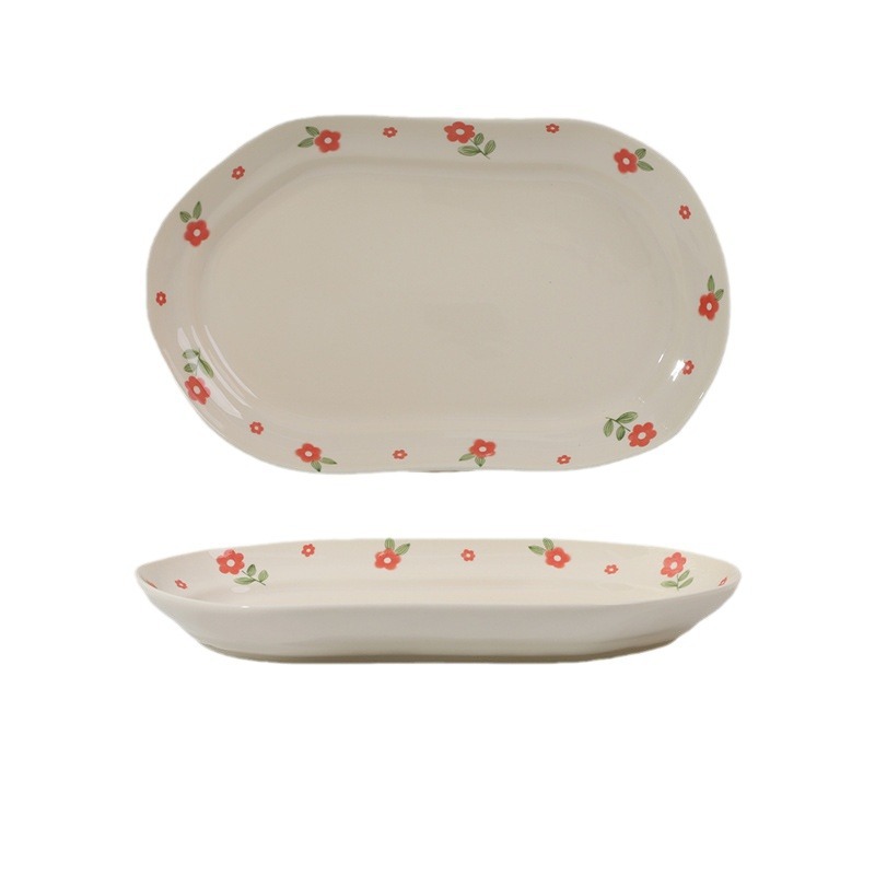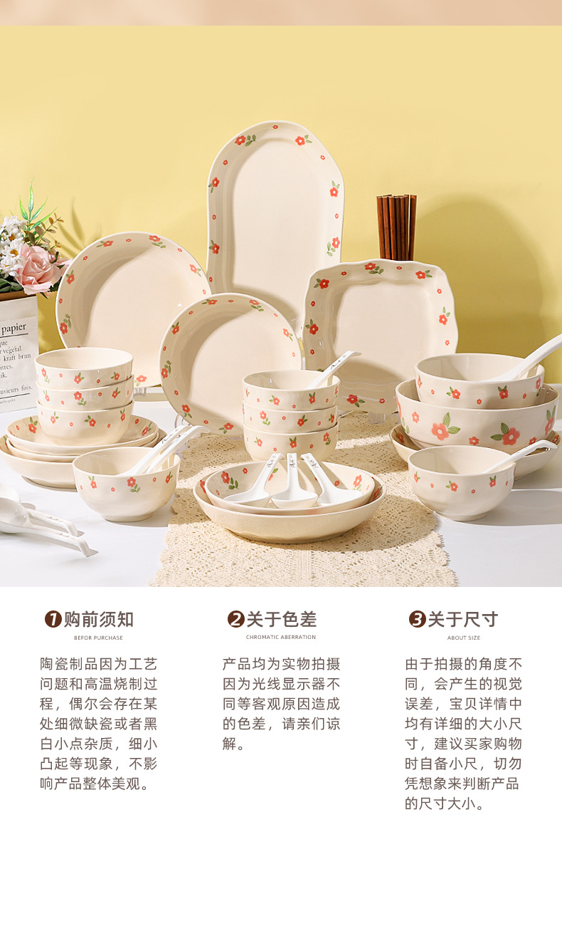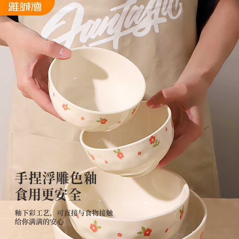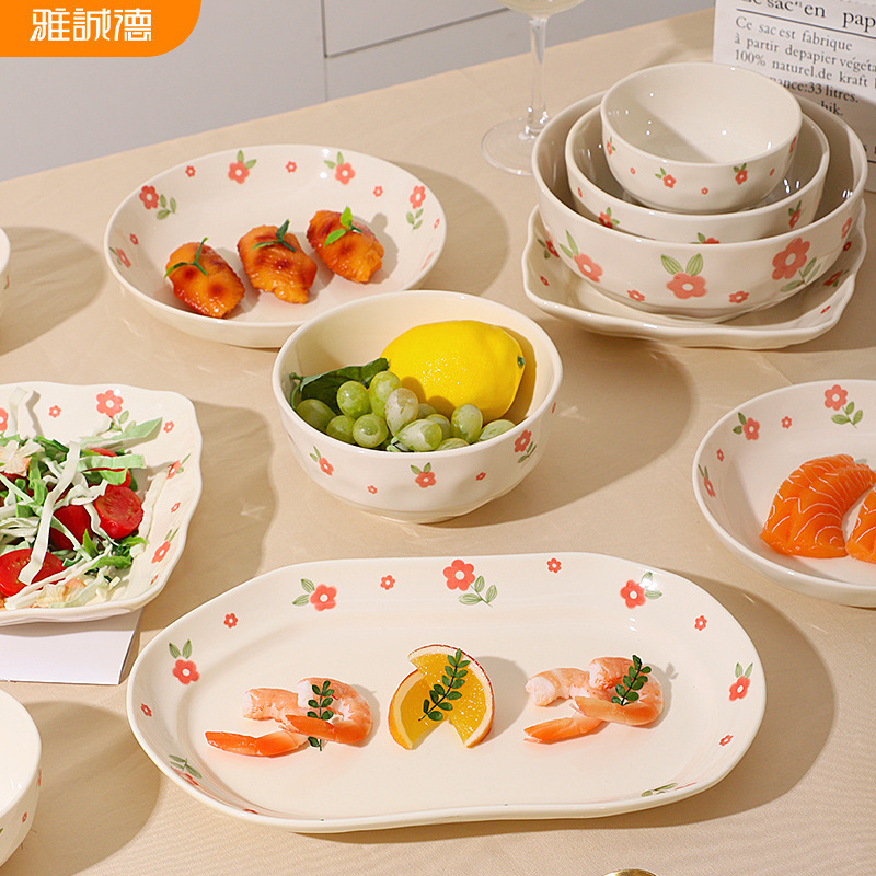 Yachengde 크림 스타일 식기 세트 유약 색상 세라믹 가정용 대형 수프 그릇 밥 그릇 접시 그릇 및 숟가락 조합