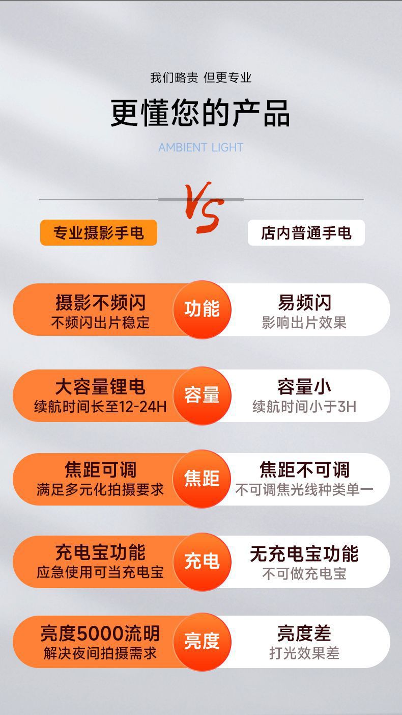 광원 3개(흰색#노란색#주황색) 줌 가능 - 직접 충전 가능