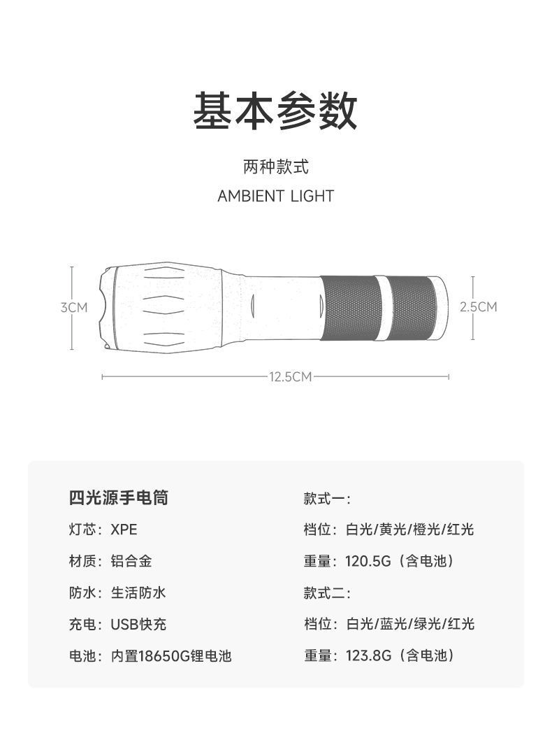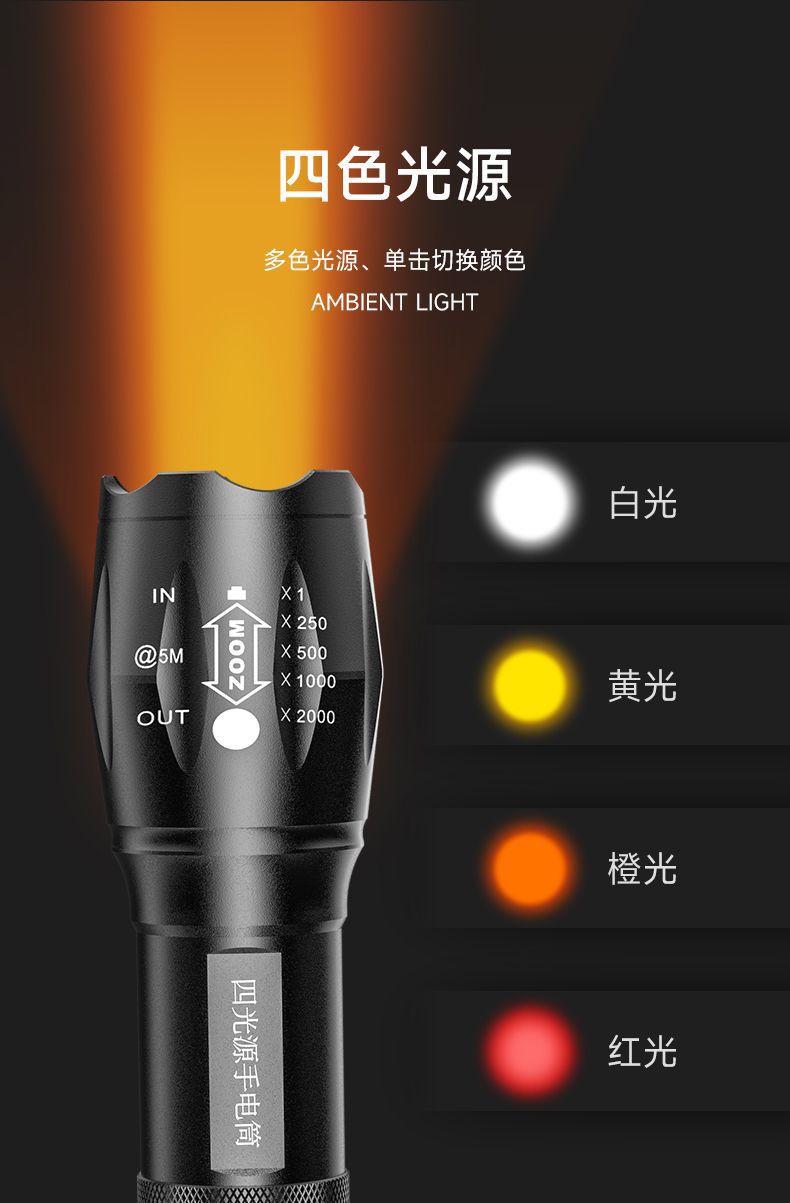 4개의 광원(흰색#파란색#녹색#빨간색) 줌-직접 충전